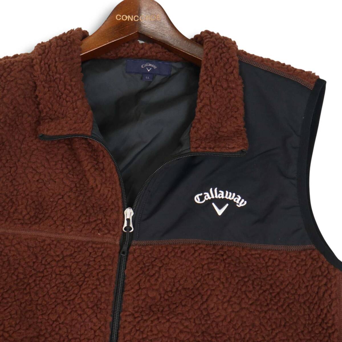 Callaway キャロウェイ ゴルフ 秋冬 ロゴ刺繍★ ボア フリース ジップアップ ベスト Sz.LL メンズ