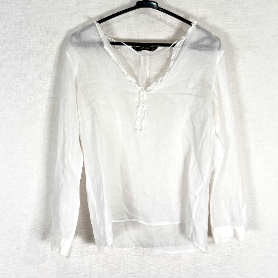 【ZARA BASIC】ザラベーシック ラミー100% 白 ホワイト シアーブラウス シースルー カットソー トップス レディース Mサイズ【c022】