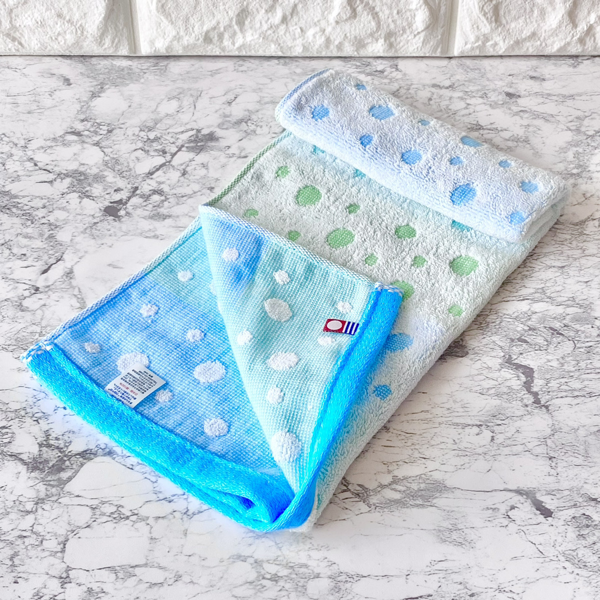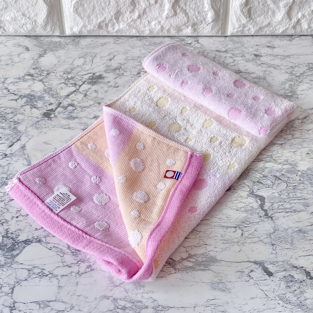 かわいい、水玉柄2色組(ブルー、ピンク)の今治タオルです。