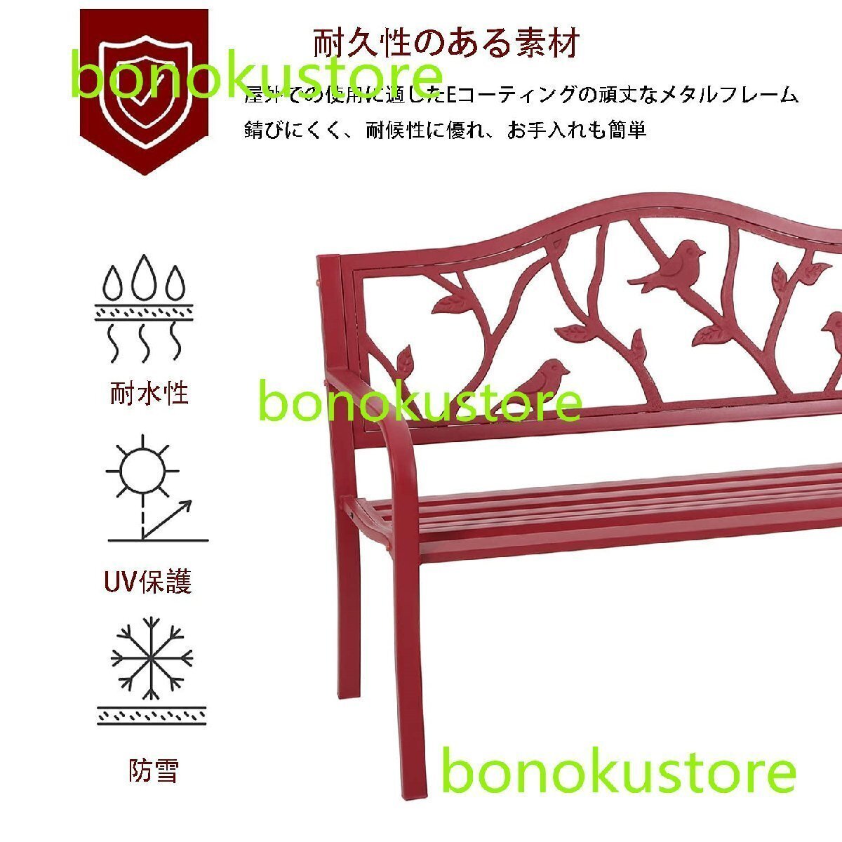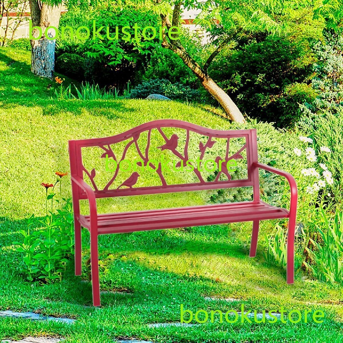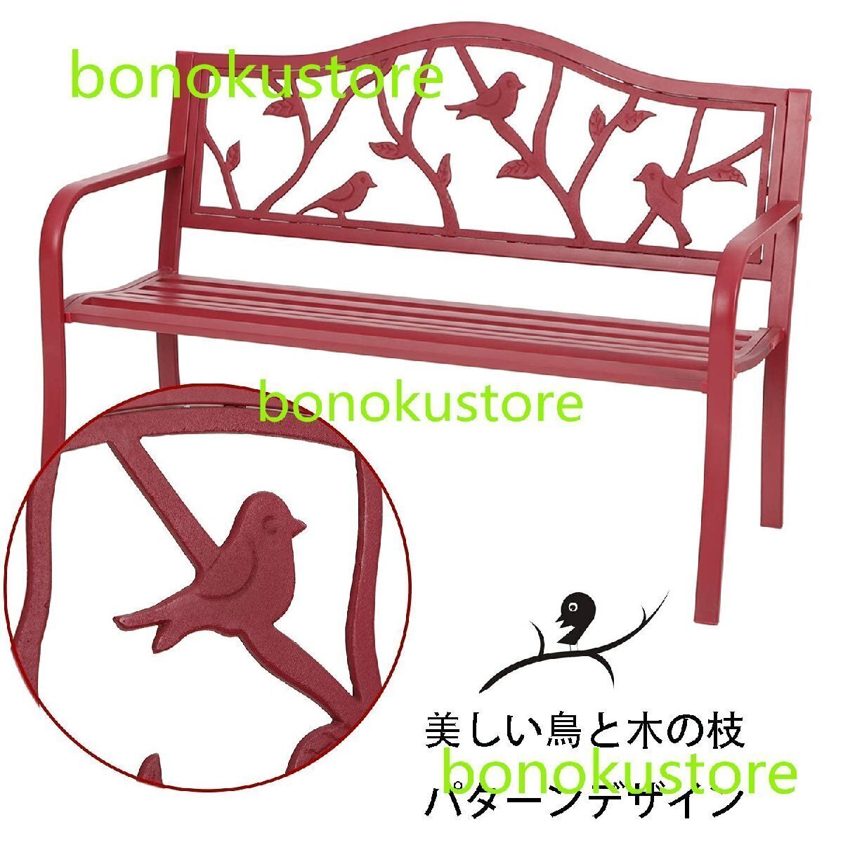この金属製のベンチの裏側には赤い鳥の模様があり、とても繊細で裏庭や庭をより美しくします!