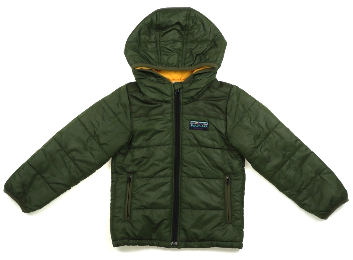 表地・裏地・中綿はポリエステルです。フードは縫い付けです。パイピングに絵玉あり。ファスナーのしたがやや劣化していますが、着用に問題はなさそうです。