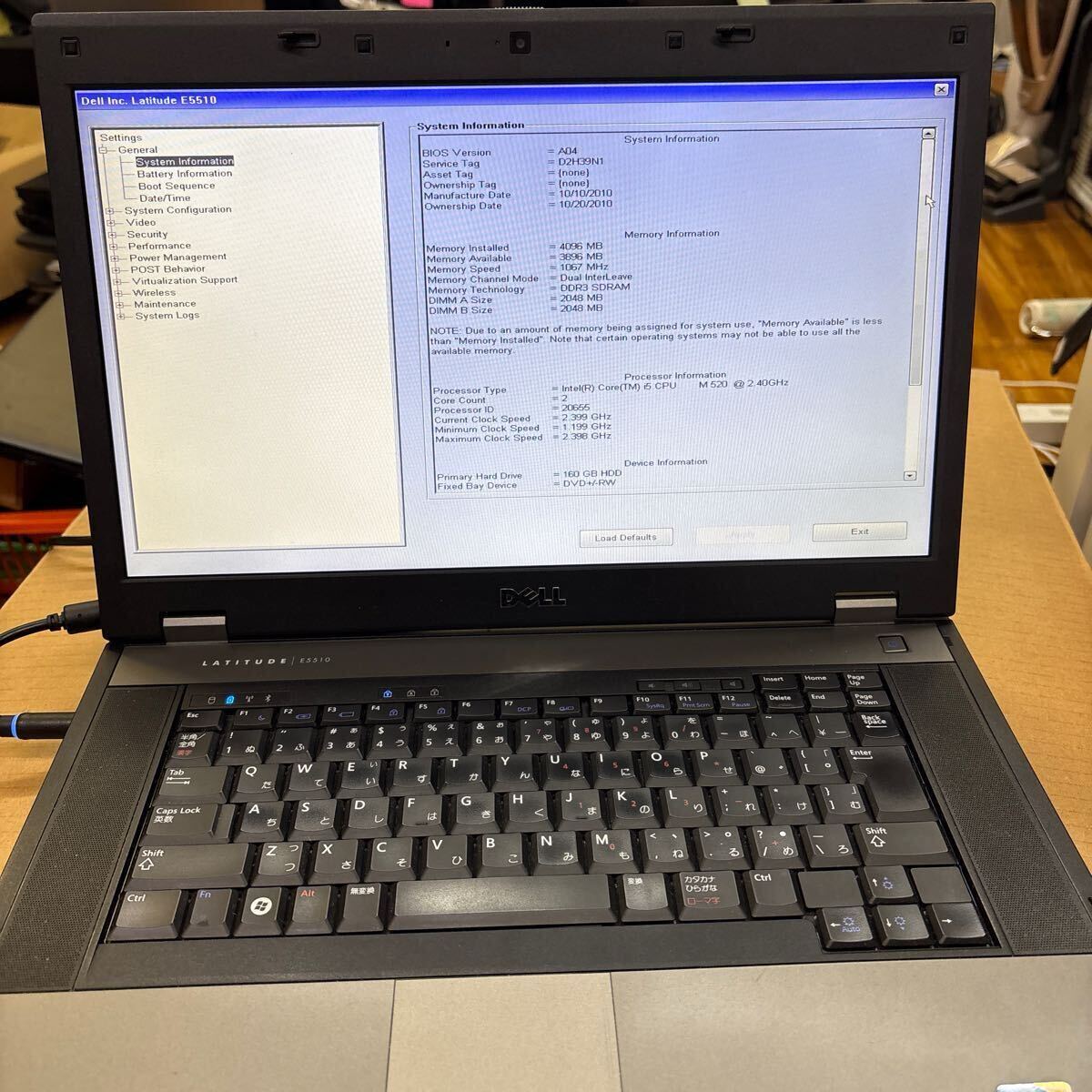 B10-77 ノートパソコン DELL E5510 メモリー4GB 160GBHDD OSなし Corei5 CPU M560 2.64GHz ジャンク ACアダプターなし