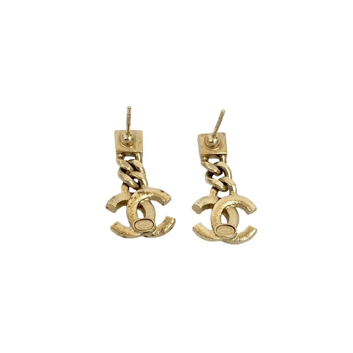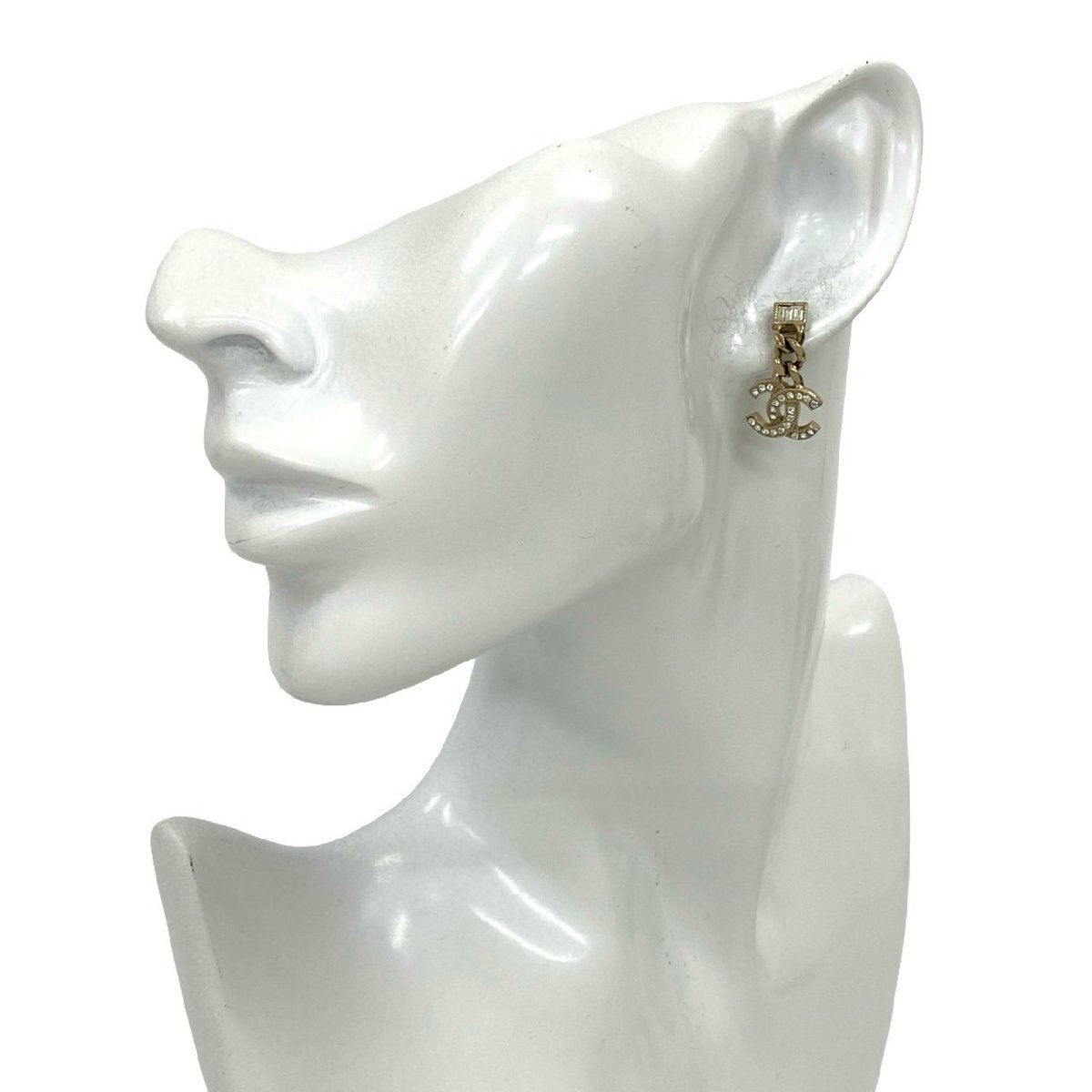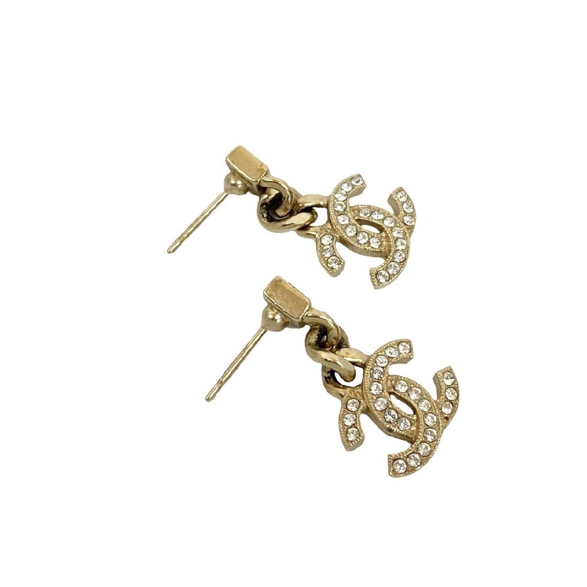 極 美品 箱付き コメあり C22B CHANEL シャネル ココマーク メタル ラインストーン チェーン ピアス アクセサリー ゴールド 97497
