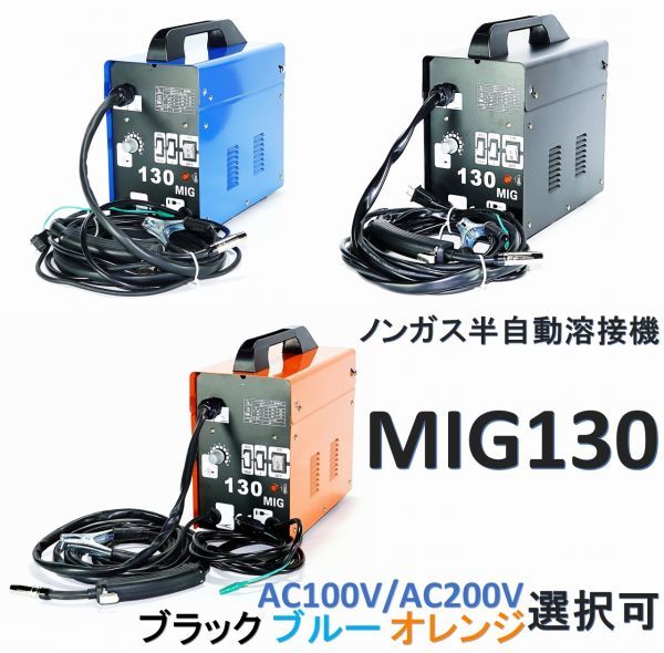 | 【新品即納送料無料】ノンガス半自動アーク溶接機 MIG130!単相AC100V AC200V カラー 選択可! 改良最新版(ロングトーチ採用) | |