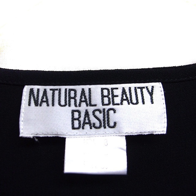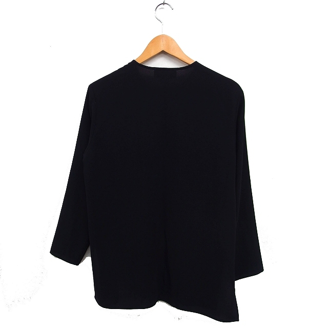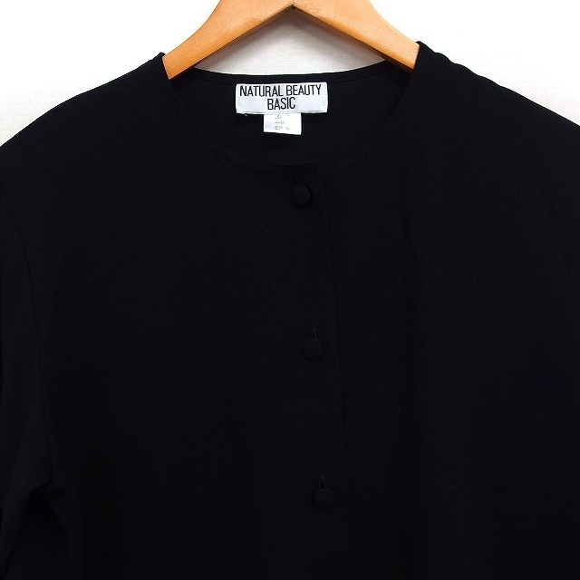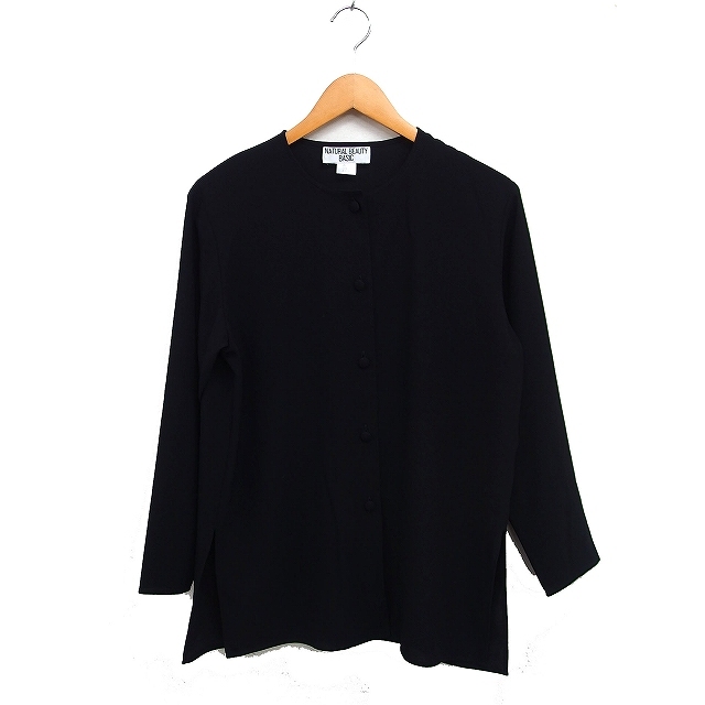 ナチュラルビューティーベーシック NATURAL BEAUTY BASIC シフォン ノーカラー シャツ ブラウス 長袖 無地 M ブラック 黒 /FT27 レディース