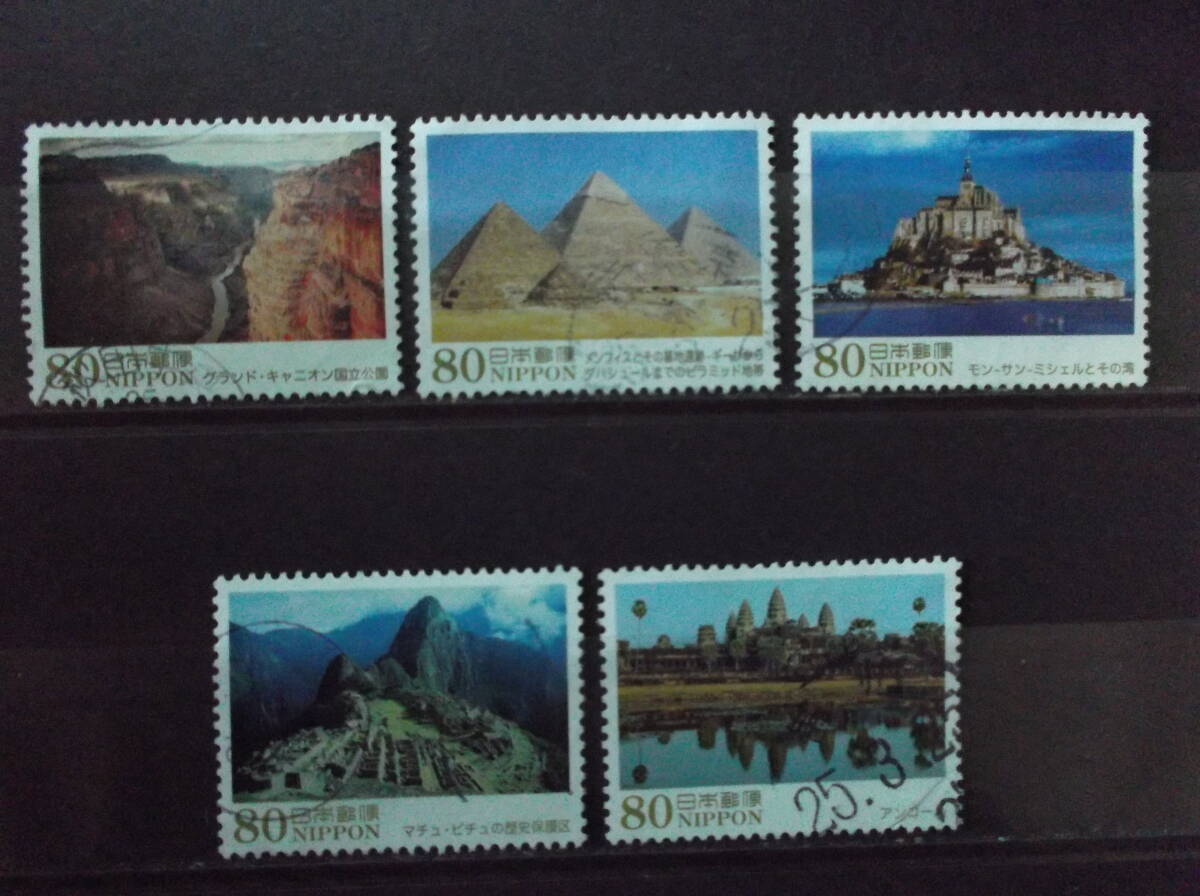 使用済みの切手 海外の世界遺産シリーズ第1集グランドキャニオンなど 5種 額面80円 2013発行