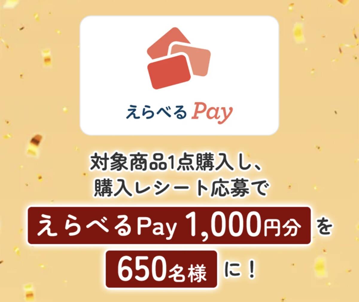 大量当選!レシート懸賞応募★えらべるPay 1,000円分が650名様に当たる★送料85円・WEB応募