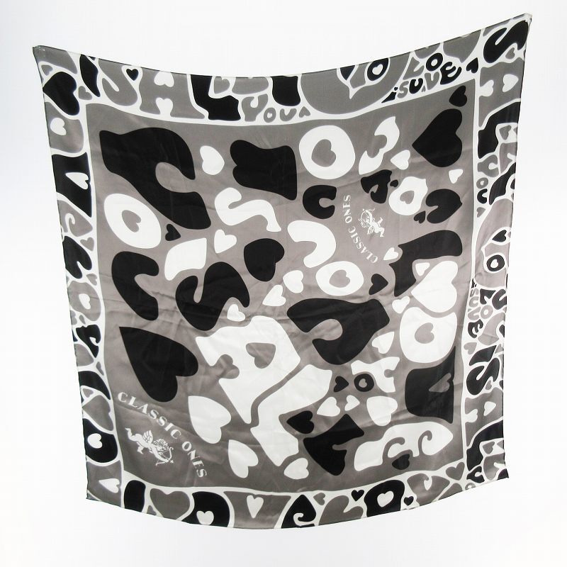 ポータークラシック Porter Classic 現行 SILK SCARF LOVE シルク スカーフラブ 総柄 グレー ブラック ホワイト 90cm×90cm メンズ