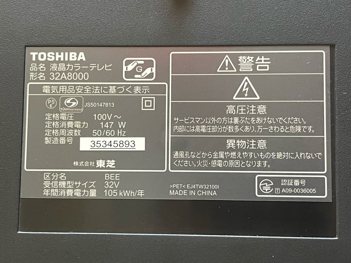 RE5603 引取可 TOSHIBA REGZA 32A8000 32インチ 液晶テレビ リモコン欠品 現状品 0620