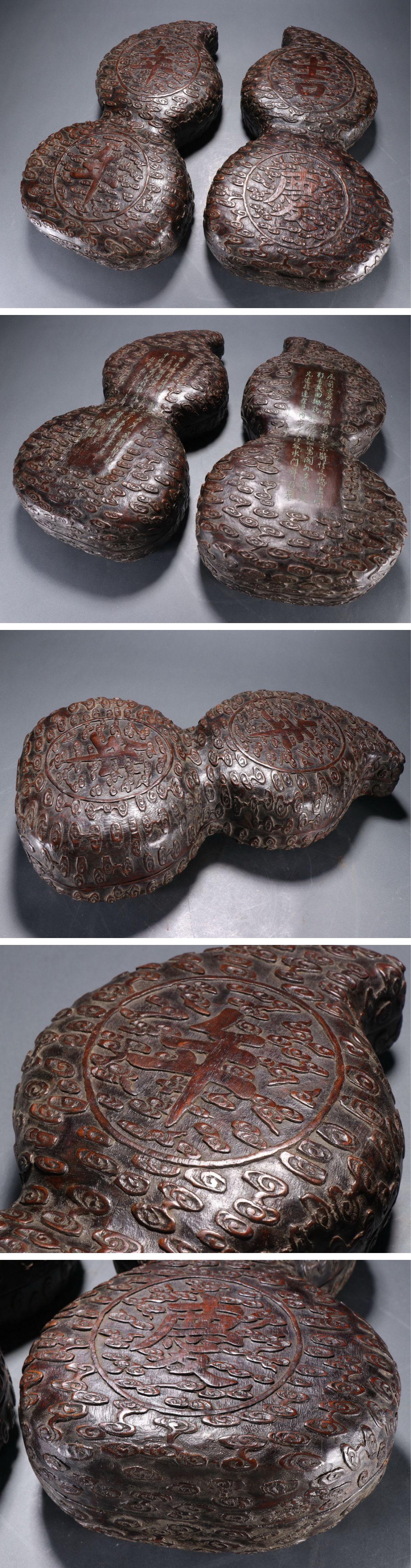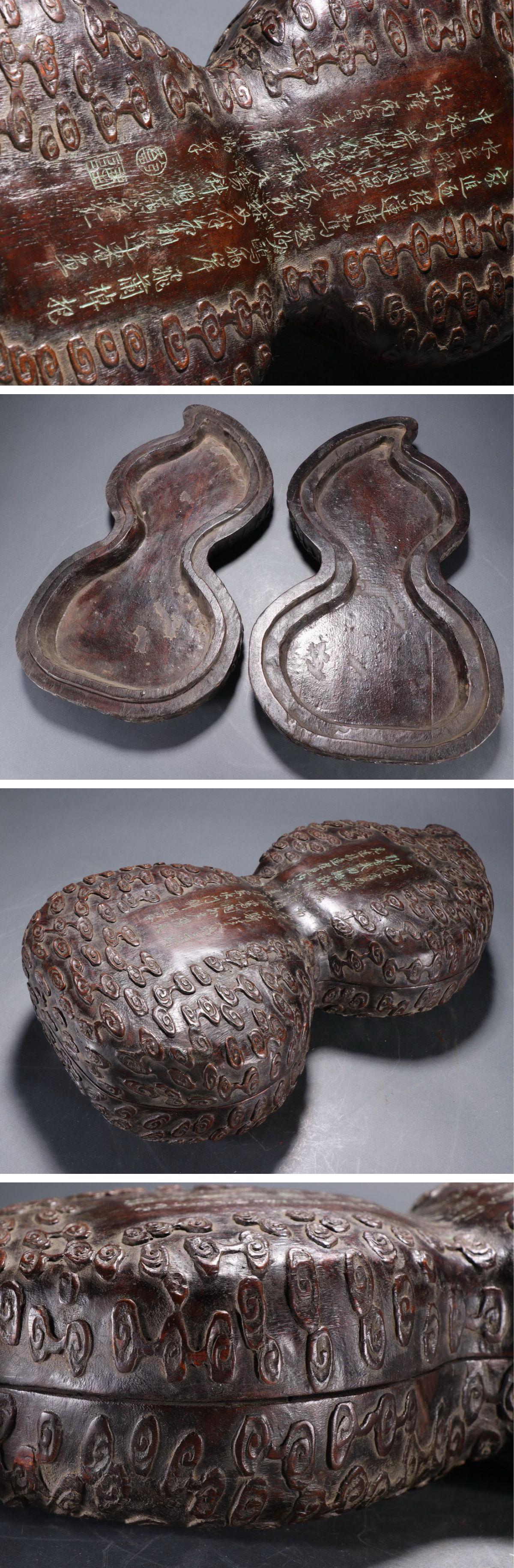 【清】某有名オークション購入 清時代 珎香「吉慶年々」漢詩紋瓢箪形蓋物一双 材質保証 古置物 古擺件 古美術 時代コレクション7L10-YT