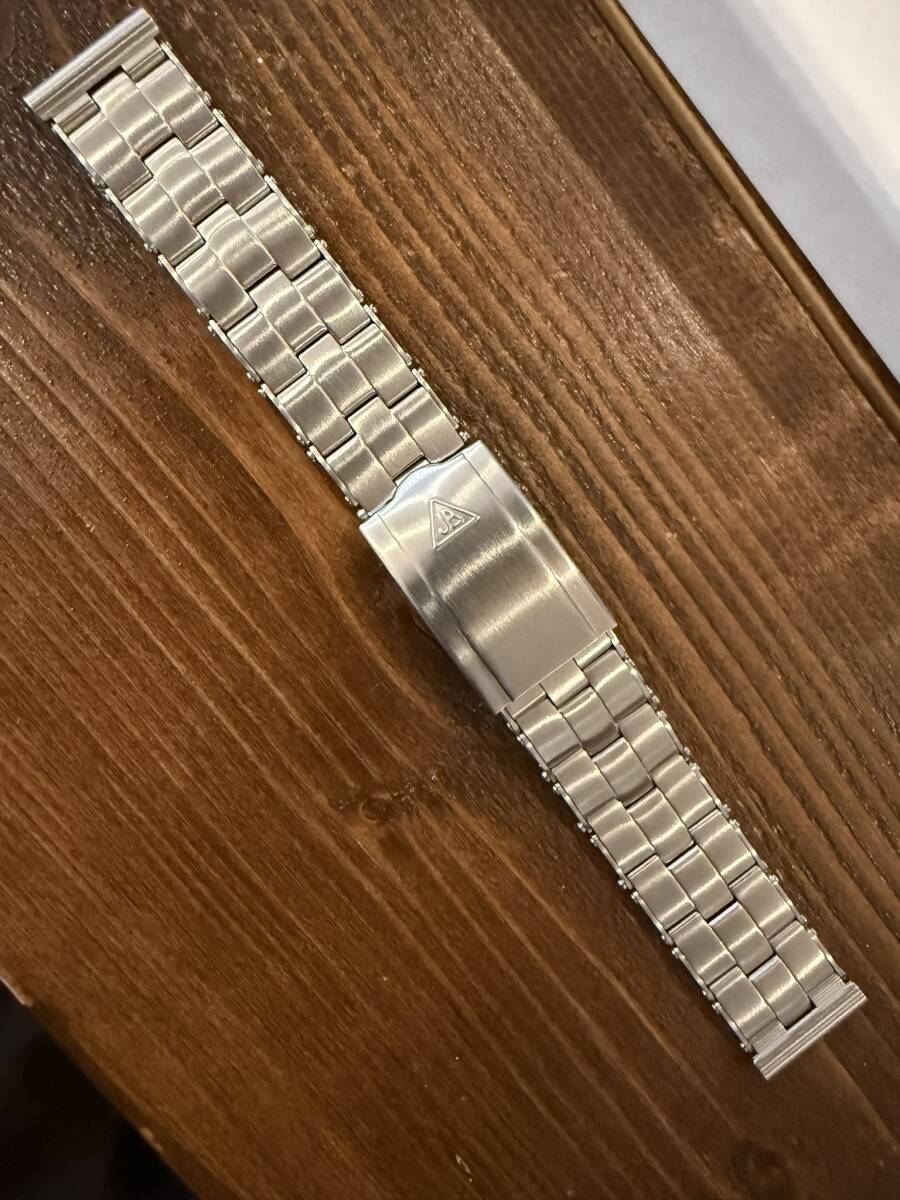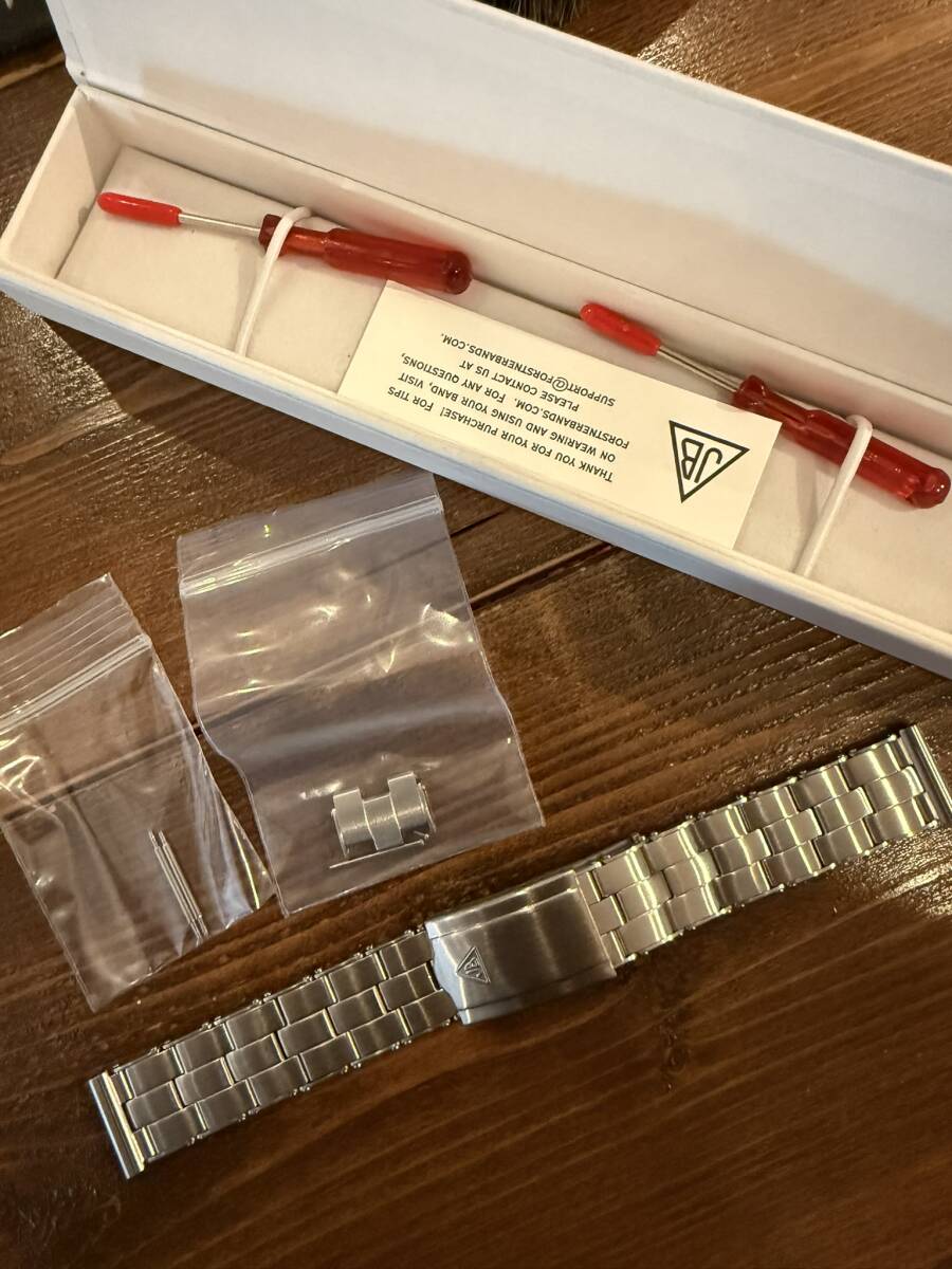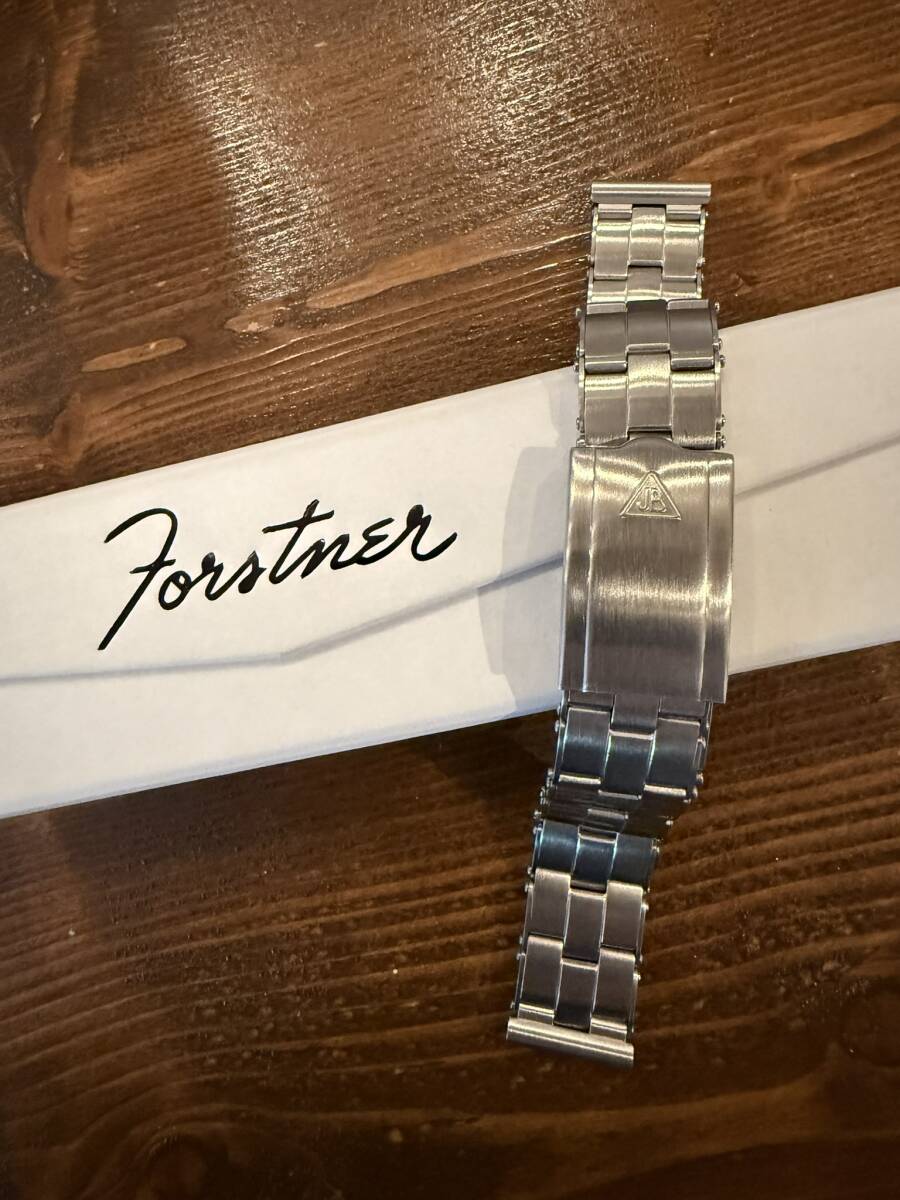 正規代理店の時計店にて新品購入後、試着のみで保管していたフォースナー のリベットブレス(ラグ幅18mm)となります。