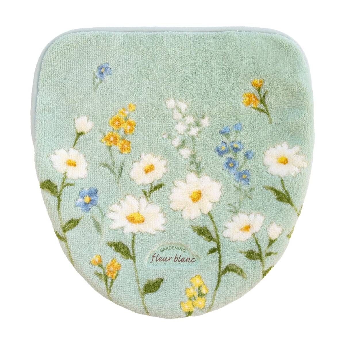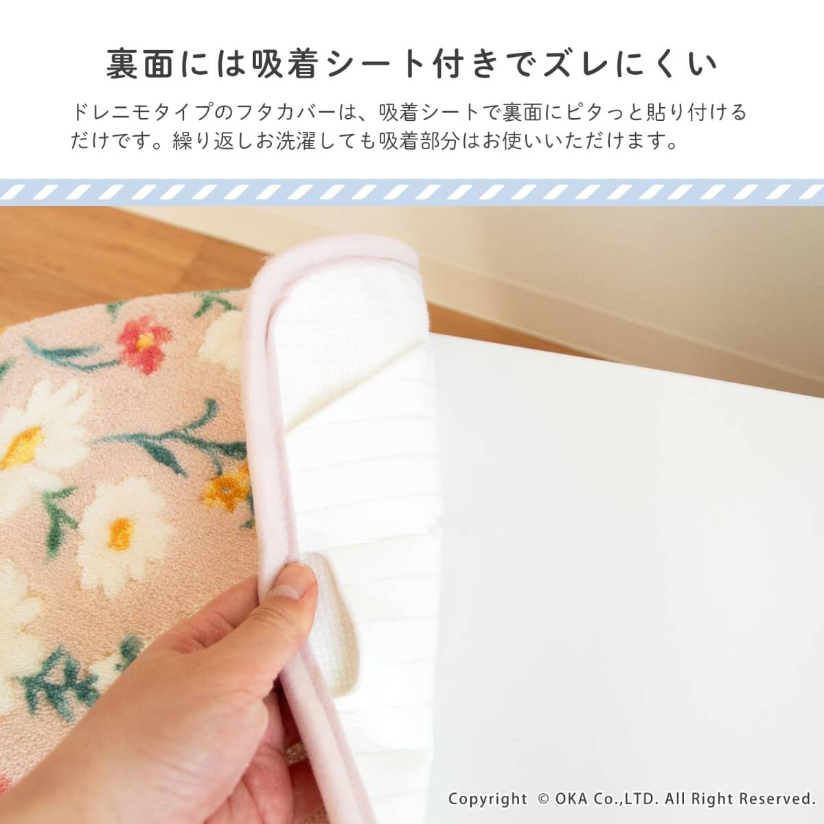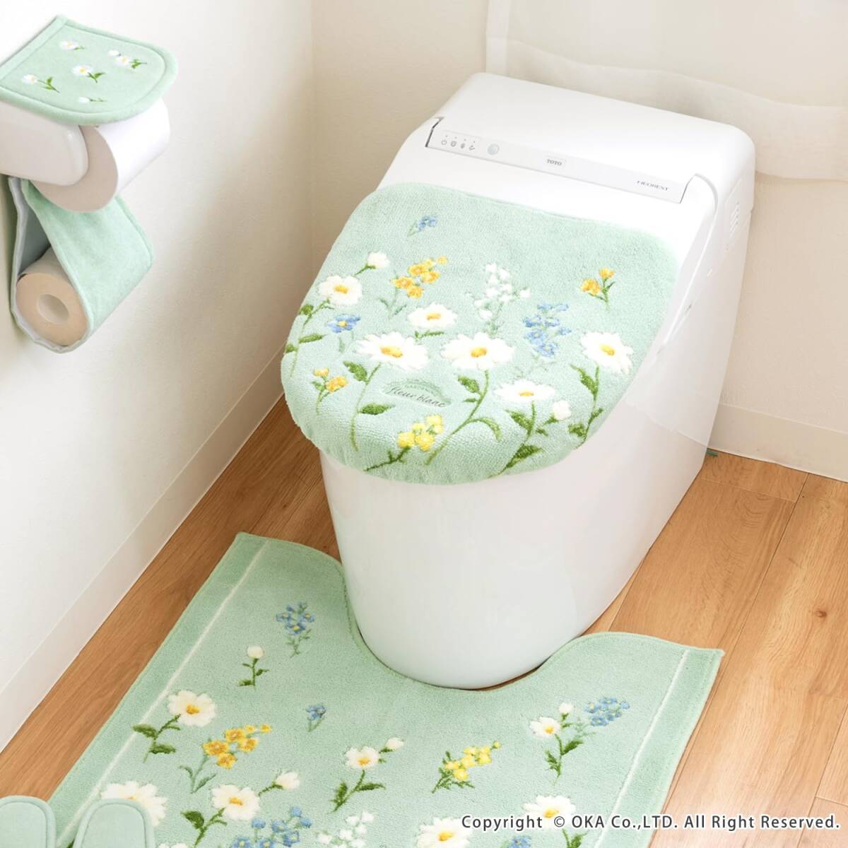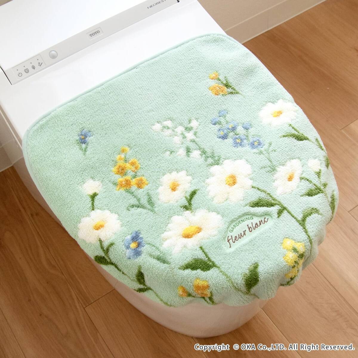 オカ(OKA) フルールブラン トイレフタカバー ドレニモタイプ(O・U・洗浄・暖房 兼用) グリーン (洗える 吸着 貼る 花柄 フェミニン