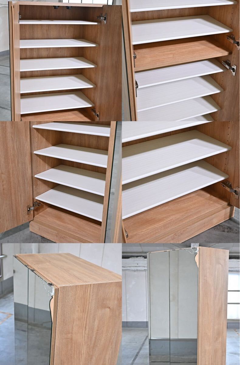 | ディノスの「ミラーシューズボックス」です。 どの靴を合わせようか、全身ミラーでコーディネートチェック。 シンプルでミラーとの組み合わせは、 合わせやすく圧迫感の少ないデザインになっています。 幅木避けもついているので壁にぴったり設置できます。 ぜひこの機会にご検討ください。直接引取り大歓迎!!!千葉県印西市 参考価格:6万円ほど |