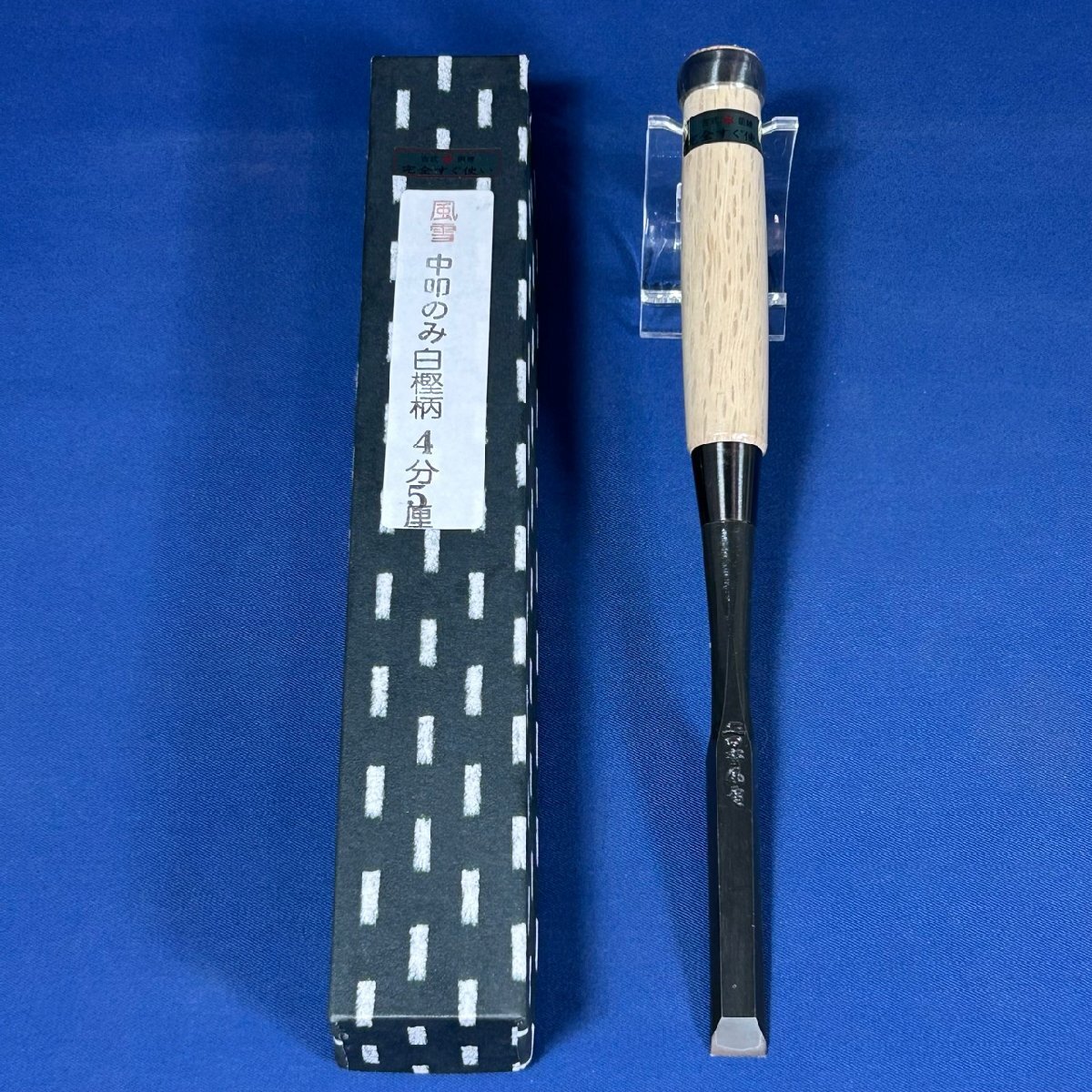 田斎道生作 《風雪》 中叩き鑿 4分5厘(約13.5mm) 『全長:262mm』『刃材質:白紙一号鋼』『白樫柄』鑿鍛冶田齋《新品》