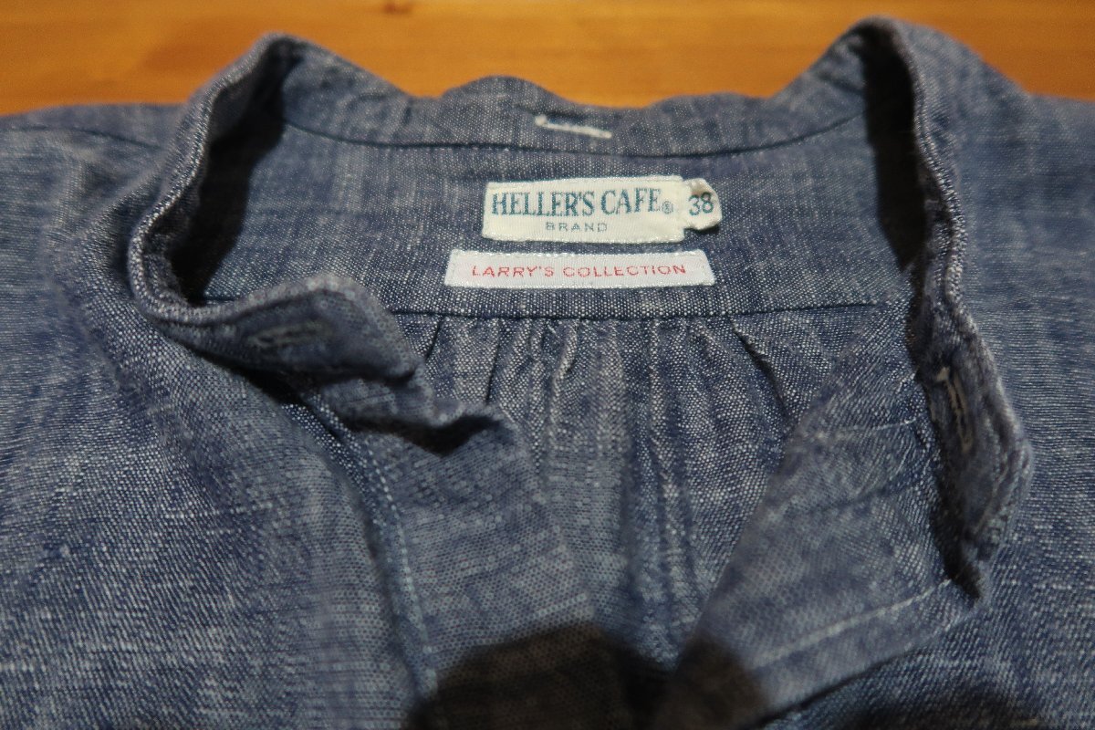 ウエアハウス ヘラーズカフェ バンドカラーシャツ 38インチです、肩幅約38.5cm 着丈約71cm 身幅約50cm 袖丈約63cmです、使用感もあまりなく良い状態です、発送はレターパックライトのみになります。