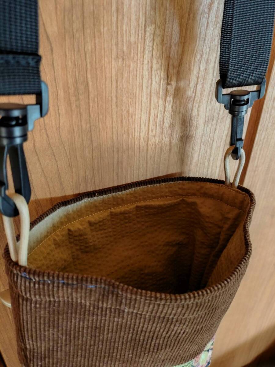 肩紐は黒色のストラップで長さはナスカンを含め84cm〜150cm調節可能です