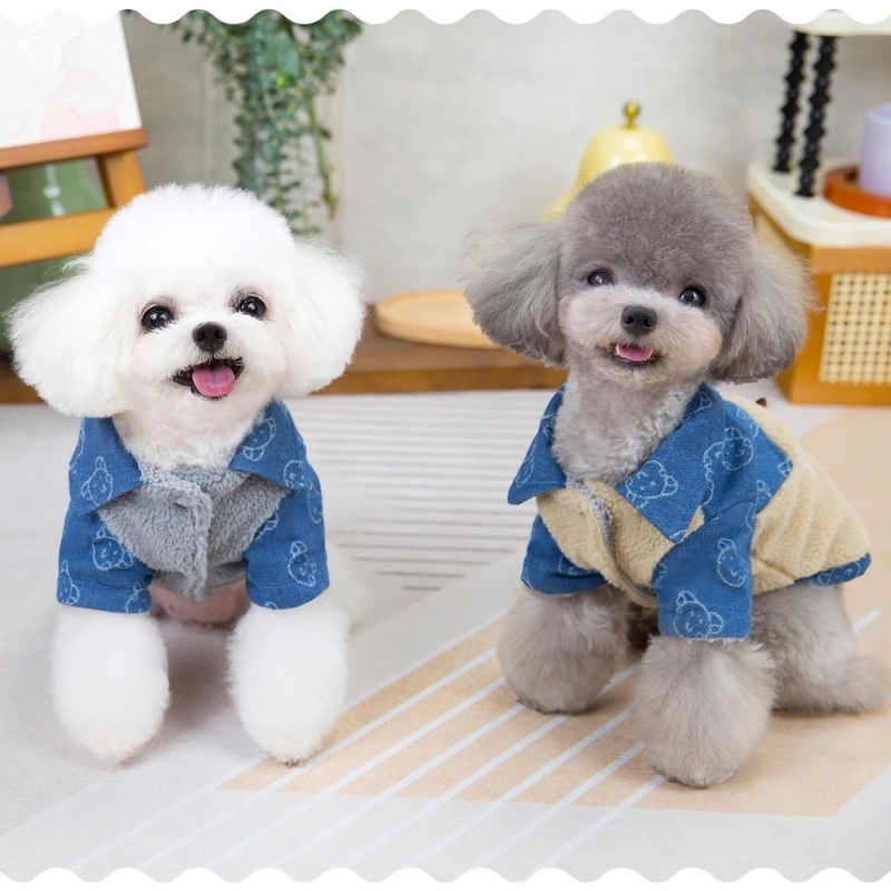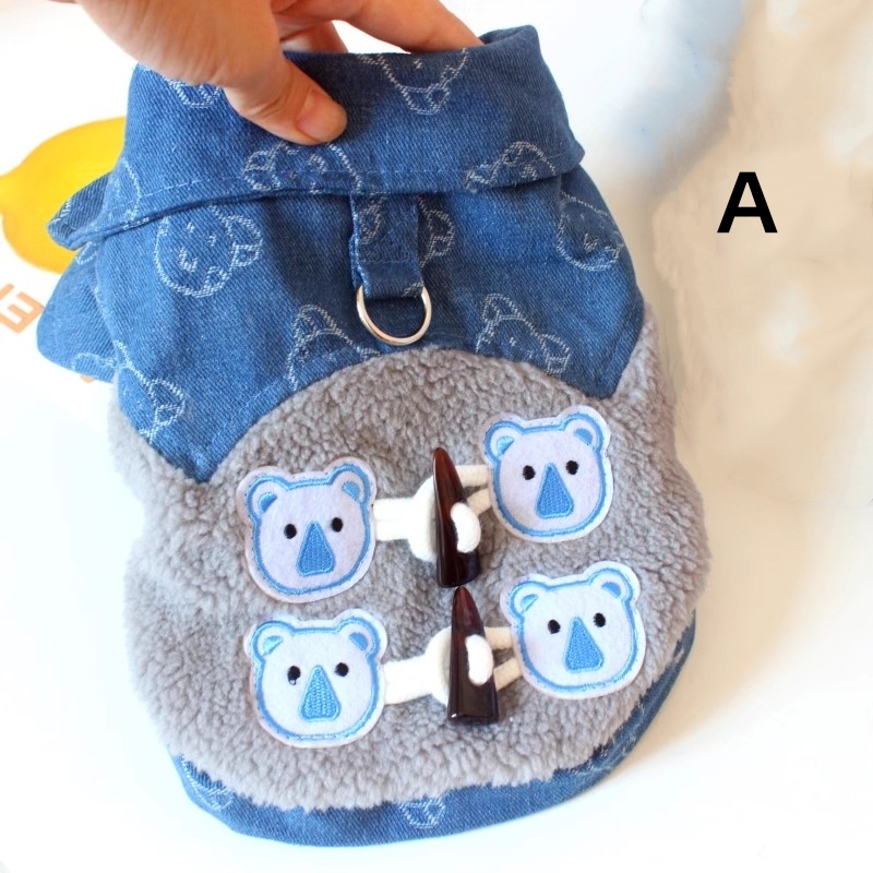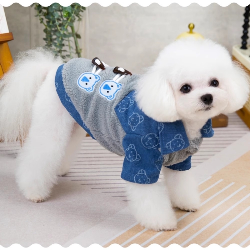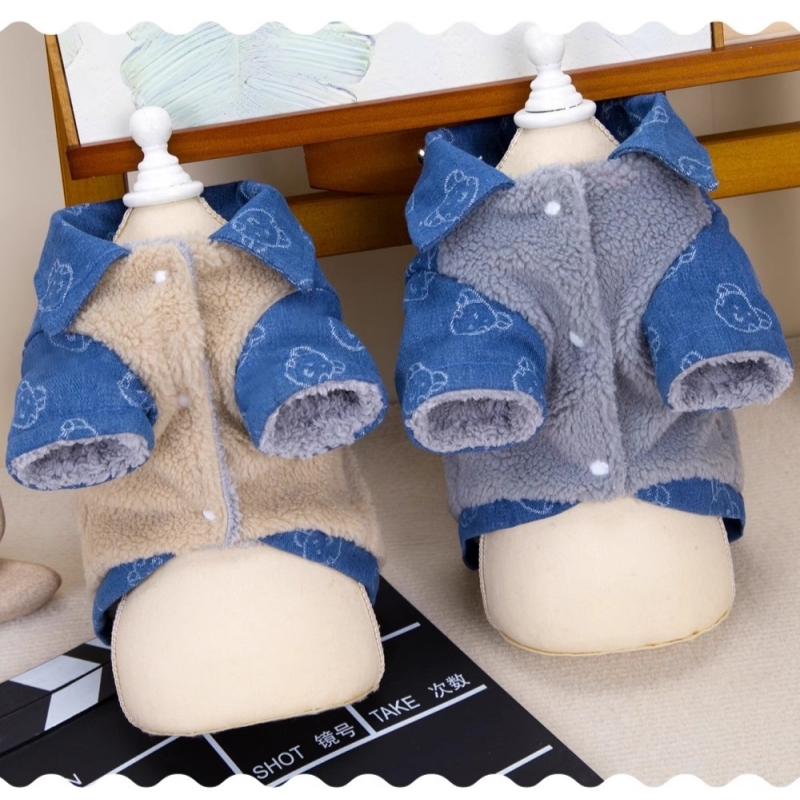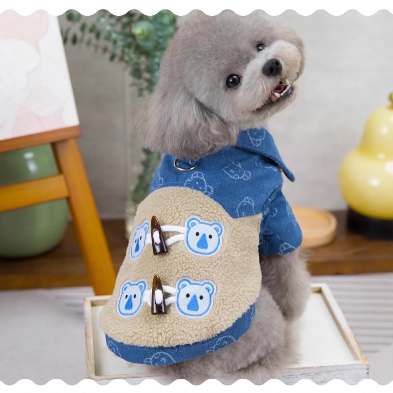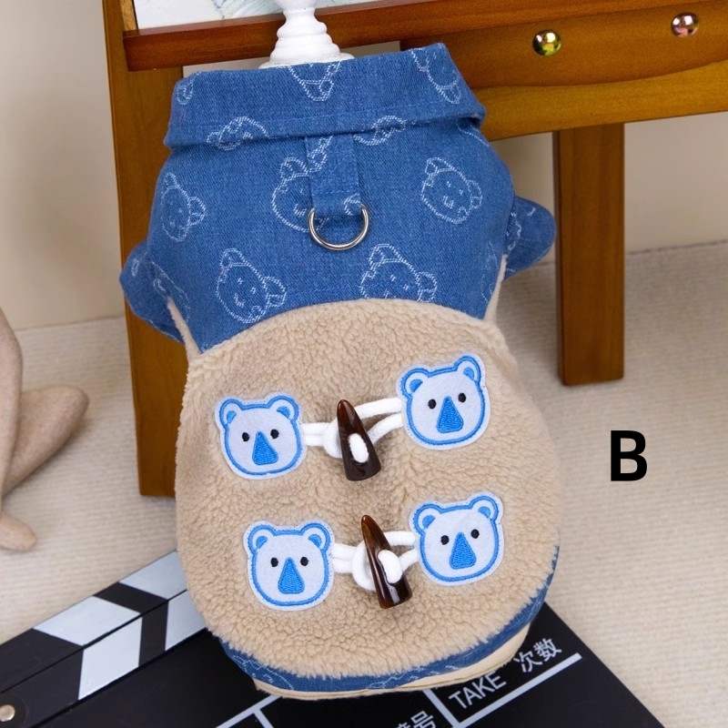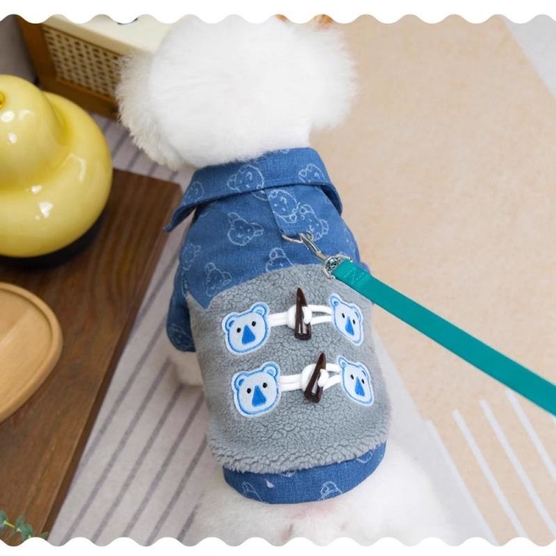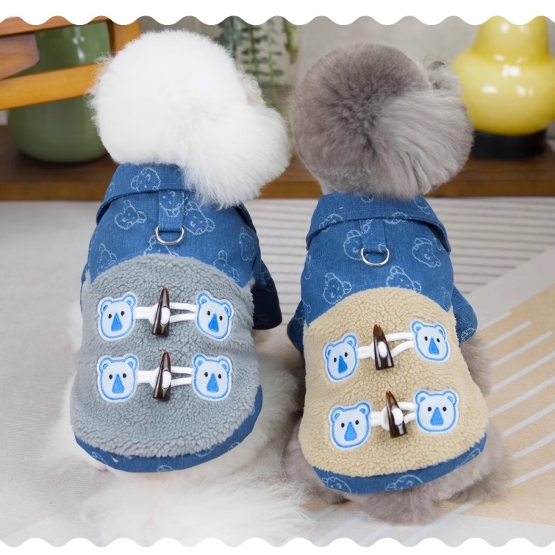 ペット服 デニムフリースジャケット ダッフルボタン付き 厚手綿入り 秋冬用 防寒 保温 小型犬 猫用 ドッグウェア おしゃれ 暖かい お散歩服 | |||