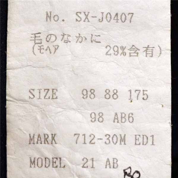 ・表記サイズ:ジャケット「98-88-175 98AB6」:スラックス「表記なし」