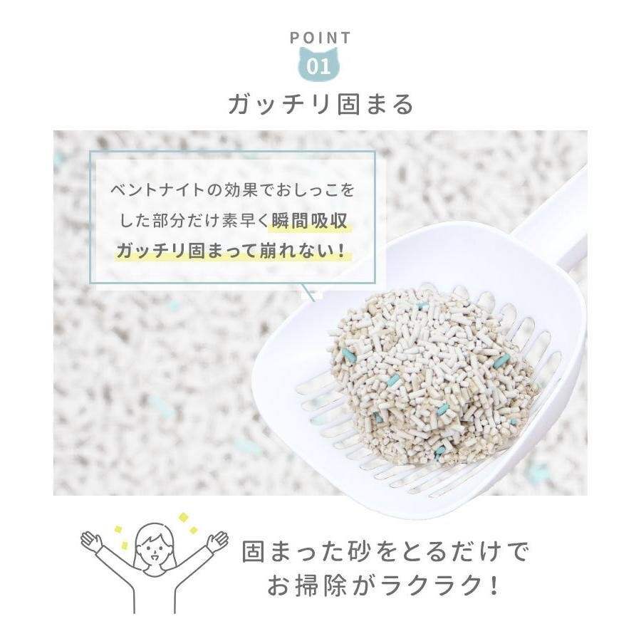 【注意事項】 ・トイレに流せる タイプではありません、水に溶けません。 トイレの詰まりの原因になるため、水洗トイレや排水口には流さないでください。 ・乳幼児やペットが触れない所に保管してください。 ・開封後は袋の口をしっかりと閉じ、湿気の少ない乾燥した場所に保管してください。 特に梅雨時期などには吸水、固化性能に影響を与える場合があるため、ご注意ください。 ・砂の固まり具合は、猫の尿量や体調、季節の影響により変化することがあります。 |