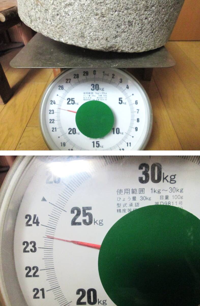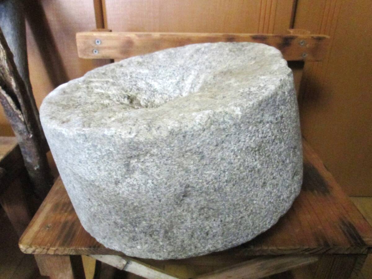 古い 石臼 (下臼) 挽き臼 約23.5㎏ 古道具 古民具 飛び石 庭石 踏み石 敷石 飛石 庭園 ガーデニング 現状品