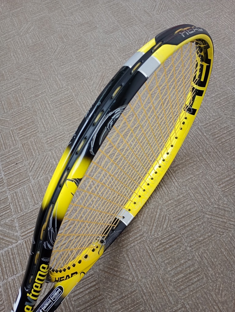 ヘッドの誇るテニスラケット競技者ライン、スピン性能がピカイチのユーテックIGエクストリームPRO。打ち負けずに重いスピンの打てる重さ315g(フレームのみ)です。
