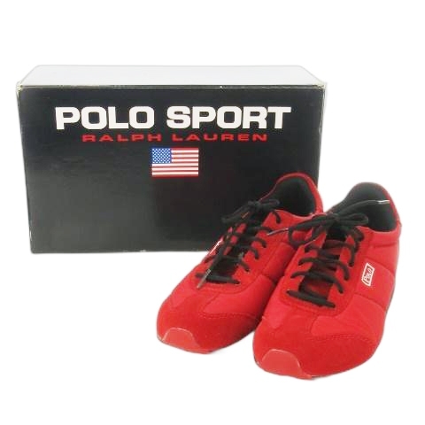 ポロ ラルフローレン POLO RALPH LAUREN POLO SPORT スニーカー ローカット レースアップ スエード ナイロン ポニーロゴ 7B 24cm 赤