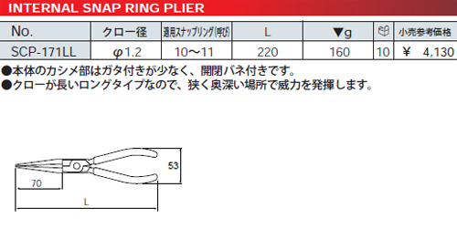 KTC 直型ロングスナップリングプライヤ穴用 SCP-171LL メール便 送料無料
