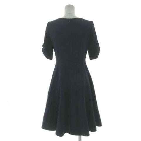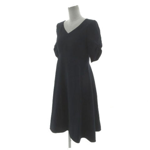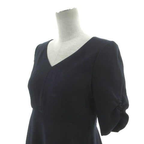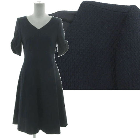 アナイ ANAYI リップルVネックワンピース 101717-14-480-65-380 五分袖 シャーリング ミディ丈 日本製 コットン混 ネイビー 紺 38