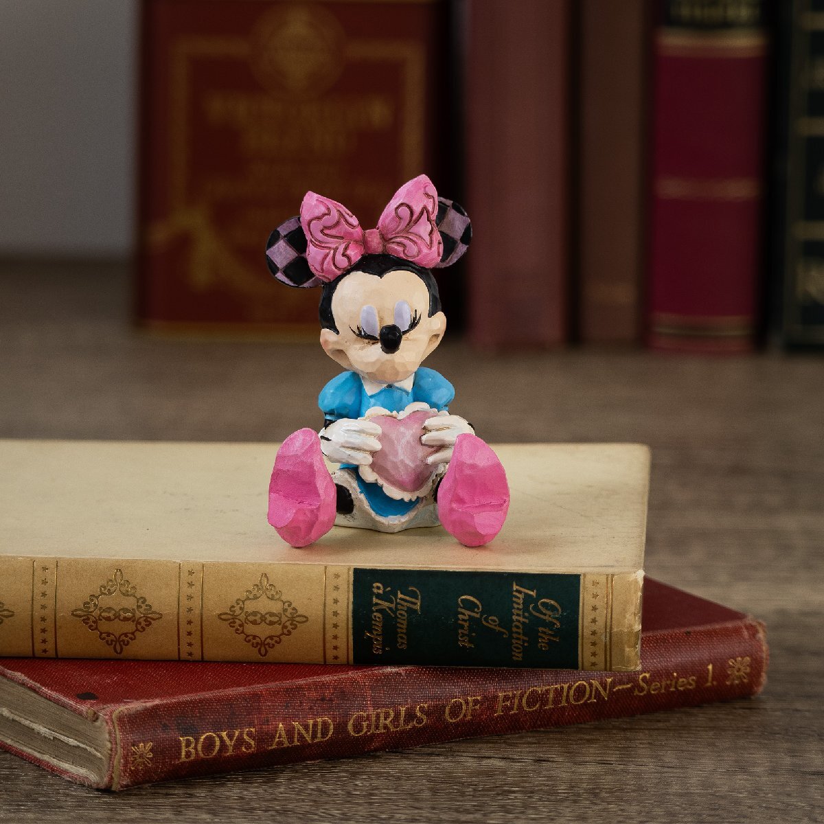 JIM SHOREが手掛けたものでDisney Traditionsからミニーのミニフィギュアが登場。 ミニーが目を細めて心の願いを込めており、胸元にはハートを抱いています。記念日など恋人へのプレゼントとしておすすめです。 高さが約7センチのミニサイズとなっております。