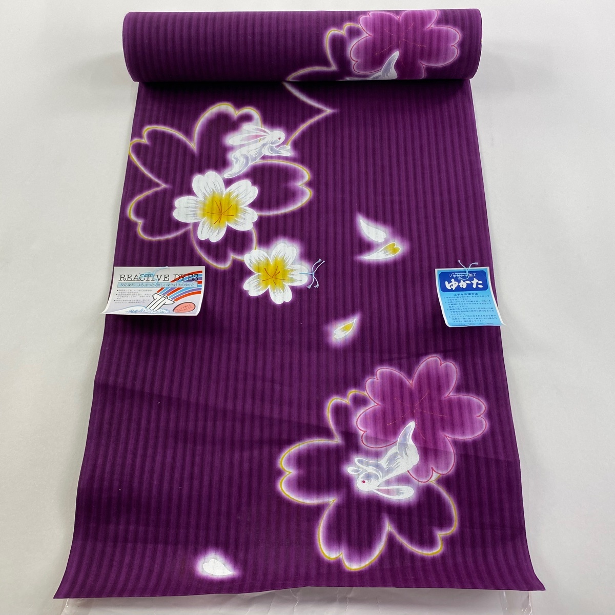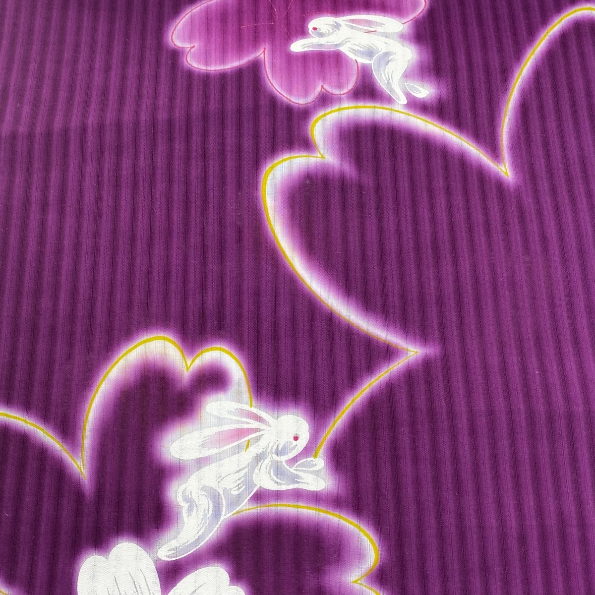 | 反物 優品 浴衣 山本寛斎 桜 うさぎ 紫 綿 【中古】 |