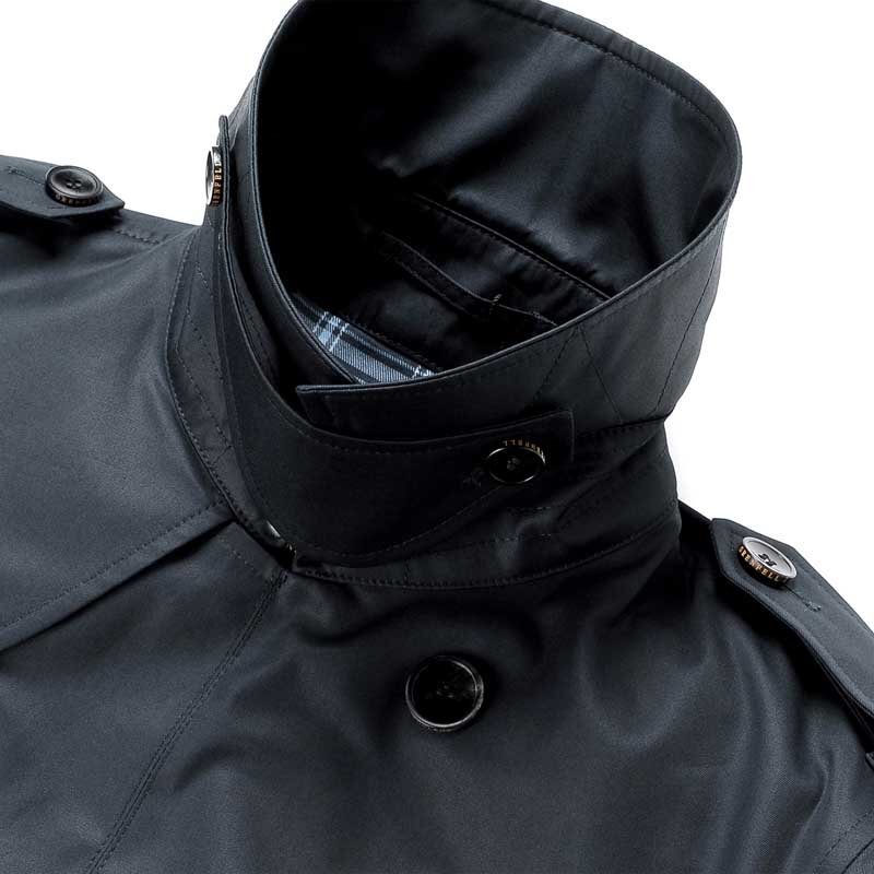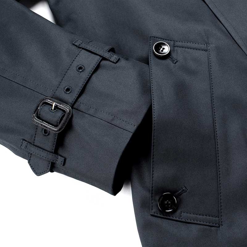 ・チンストラップ、エポーレット、ガンフラップ、アンブレラヨーク、ウエストベルトなど、トレンチコートの伝統的なディテールを備えた、貫禄漂うオーセンティックなデザイン。