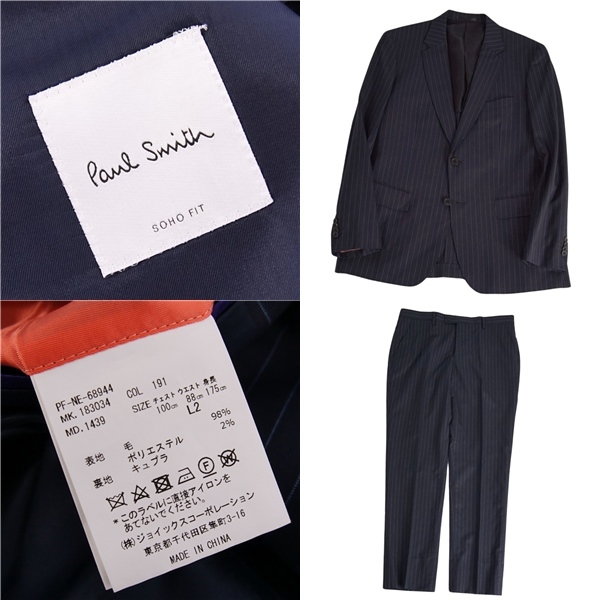 | 美品 ポール・スミス Paul Smith セットアップ スーツ シングル ストライプ ウール ジャケット メンズ XL ネイビー |