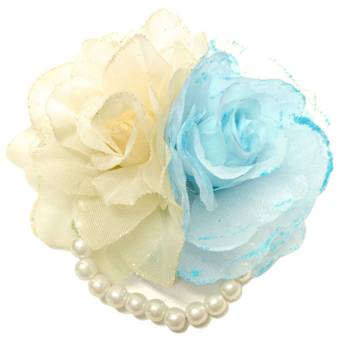 透明感のあるオーガンジーの花びらと、輝くラメの美しいコサージュ。 |