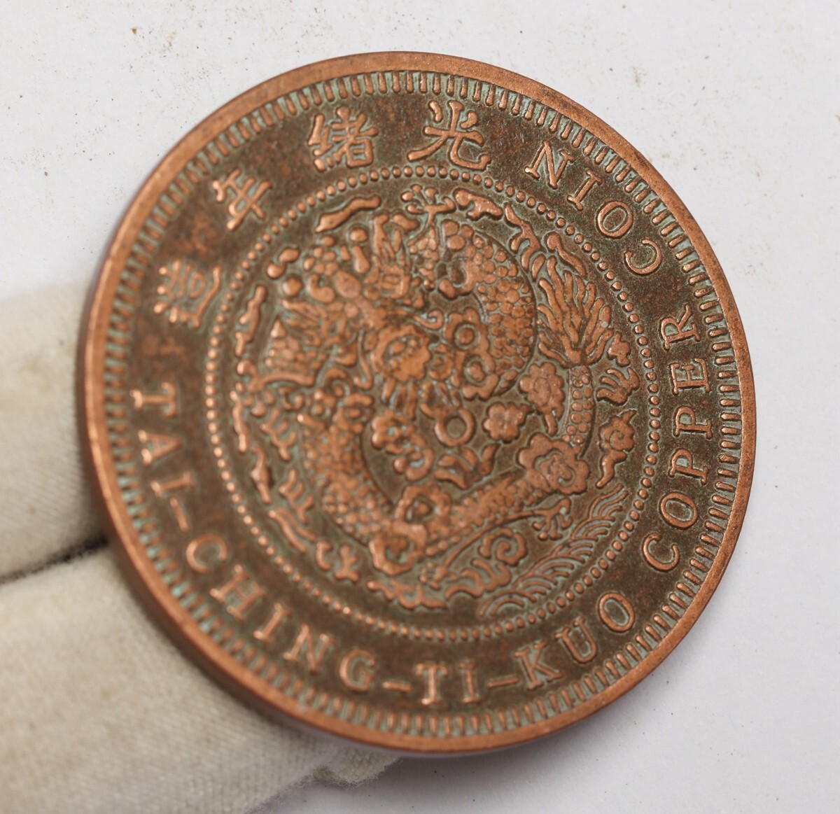 旧家蔵出し 中国古錢 光緒年造 戸部 丙午 大清銅幣 當製錢二十紋 銀模銅鑄 樣幣 銅貨 銅元 古美術品 収集家 34.57g 45.1mm
