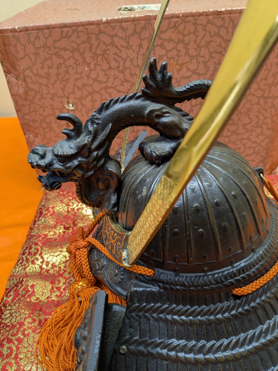 【中古】大阪引取歓迎 美術 鋳物 出世兜 五月人形 兜飾り 龍飾り【KNJJ141】 |