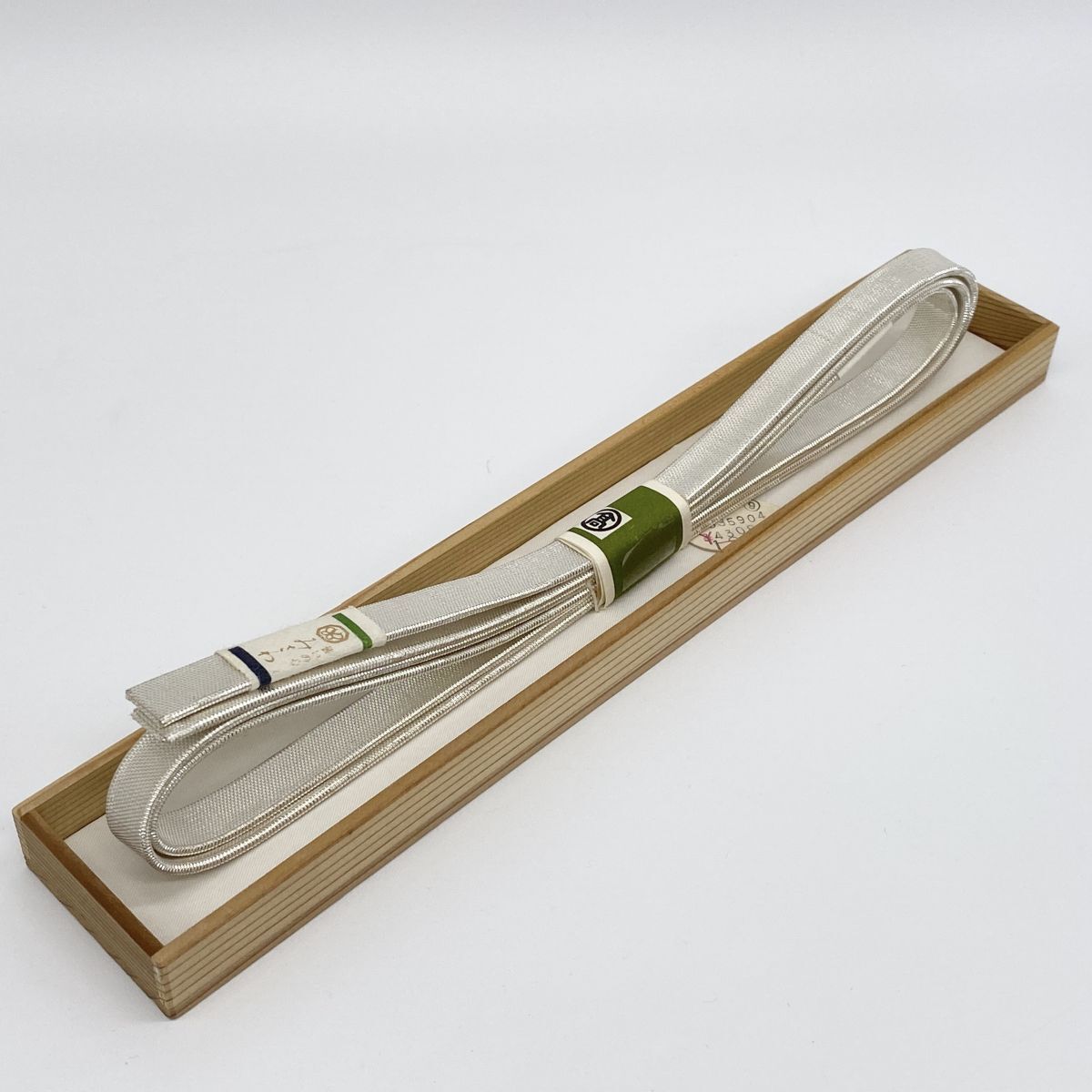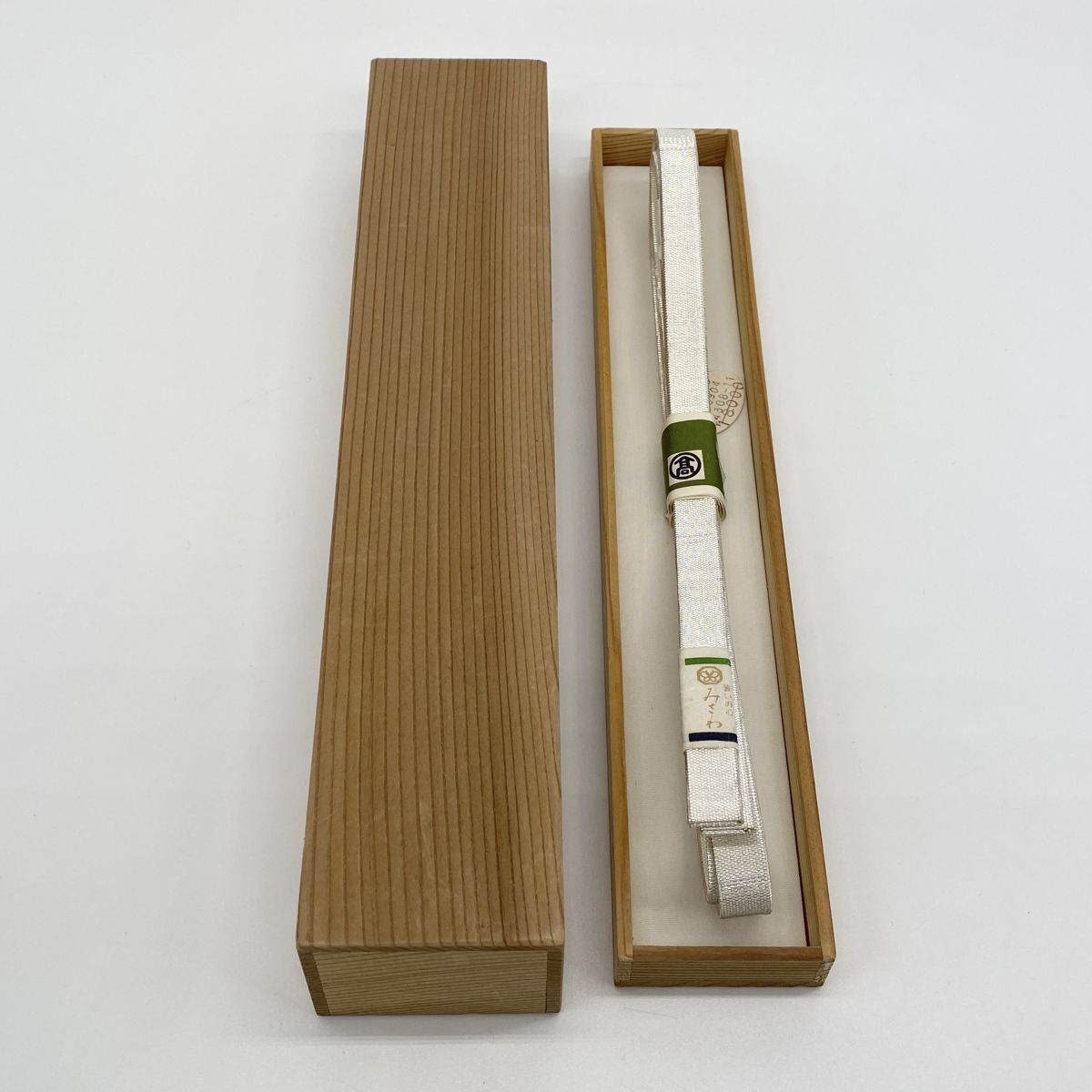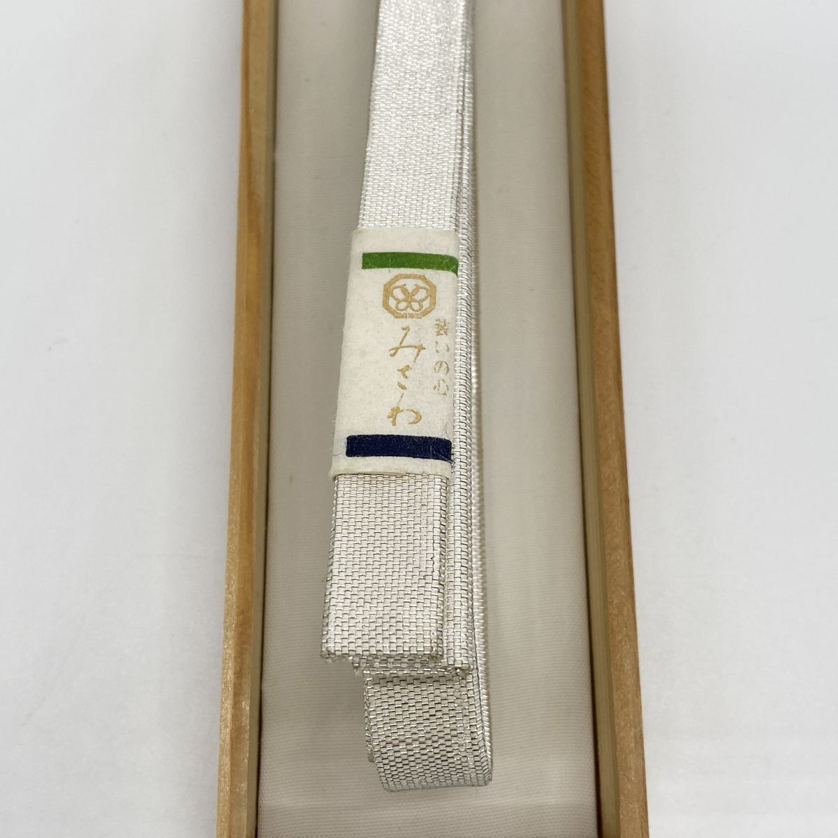 | 【18944】和装小物 帯締め 絹100% 金属糸使用 芯・綿100% 装いの心 みさわ 木箱入 シルバー 経年保管品 未使用品 レターパックプラス | |