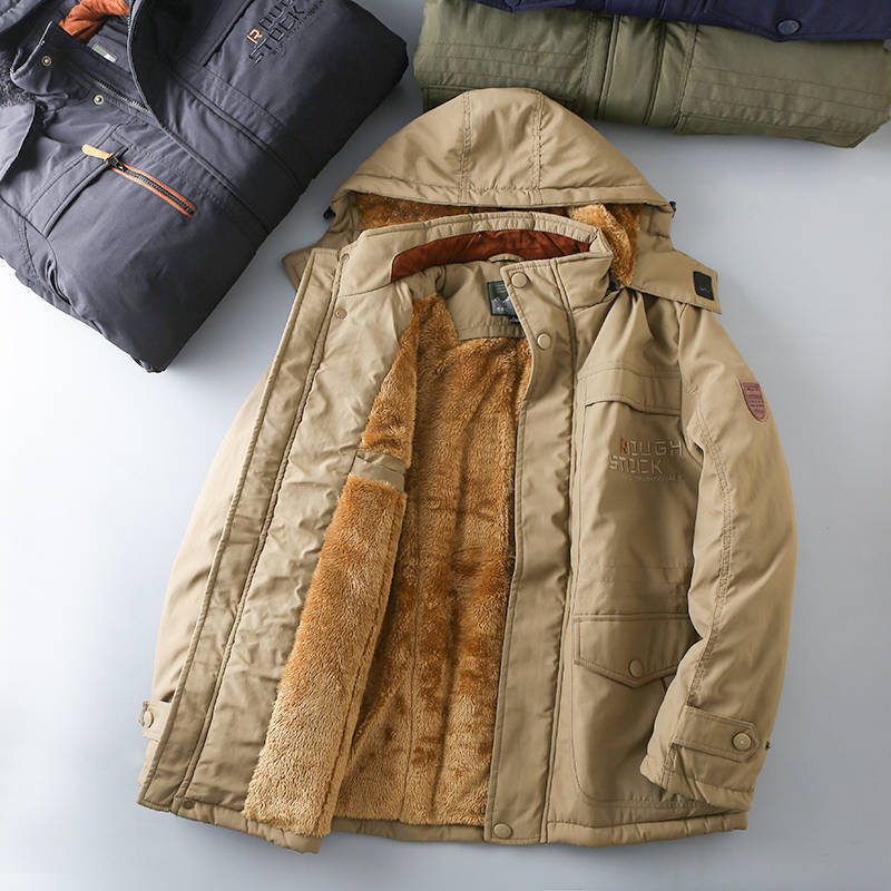 1431-Lオリーブ 中綿ジャケット メンズ 裏起毛 フード取り外し可 ジャケット 新品 防風 暖かい 厚手 アウター ブルゾン ボアジャケット