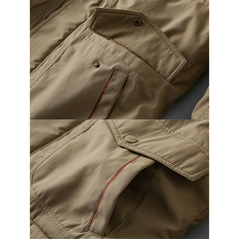 高密度の撥水生地を使用し、ハリのあるしっかりとした質感で防風性・耐久性に優れています。