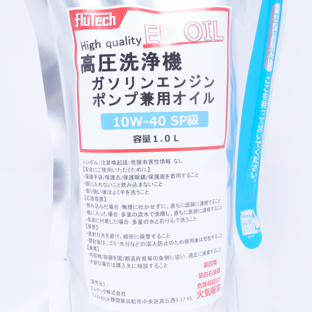 フルテックEP OIL ガソリンエンジン・ポンプ兼用オイルパウチタイプで持ち運びから廃棄まで楽々エアホールド機能で注ぎやすい!最新オイルSPグレード採用!省燃費性能・耐エンジンスラッジ性向上ピストン清浄性が高くエンジン保持性能UPパウチタイプ採用により最小スペースで保管可能開封容易な樹脂キャップ装備給油に便利なノズル付きノズル先端はお好みの量が出るよう切って調節してお使いください。