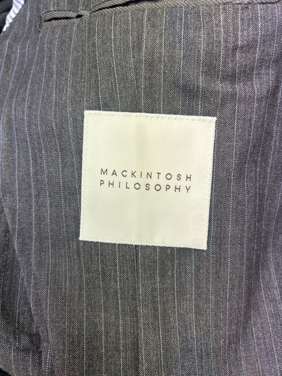 コレクターズSHOPです。木曜日はお休みさせて頂きます。同日終了のみ同梱可能です。送料は下に書いてあります | 日本製 MACKINTOSH PHILOPHY マッキントッシュフィロソフィー スーツ セットアップ サイズ42R XL相当 グレー ストライプ柄です。タンス整理のため出品します。