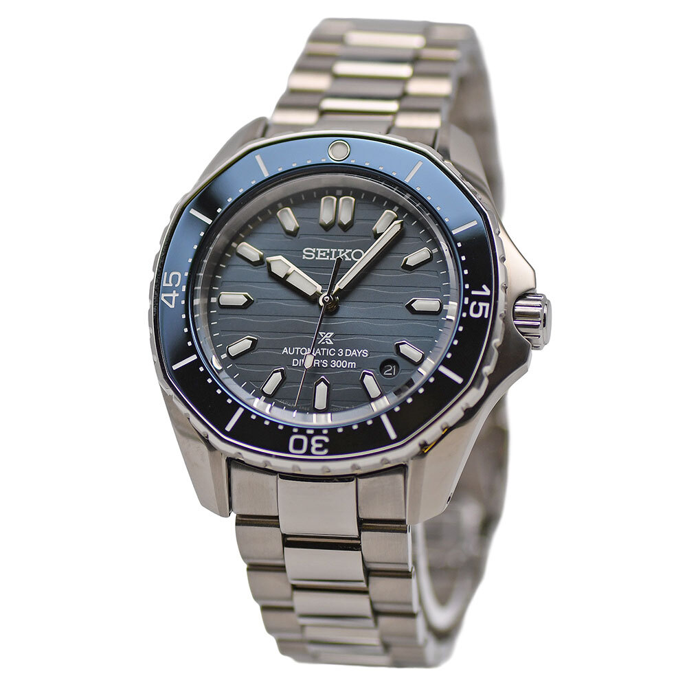 なだらかな曲面で構成された多角形ベゼルが特徴的な『SBDC203』。優美な波模様にインスパイアされたダイヤルパターンは、エレガンスな印象を引き立てます。逆回転防止ベゼル、300m防水、リューズガードなど、ダイバーズウォッチとして申し分のないスペックを備えており、アクティブシーンからカジュアルスタイルまで様々な場面で活躍してくれます。 |
