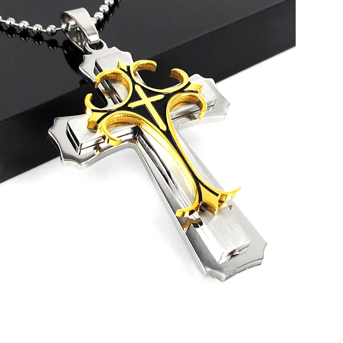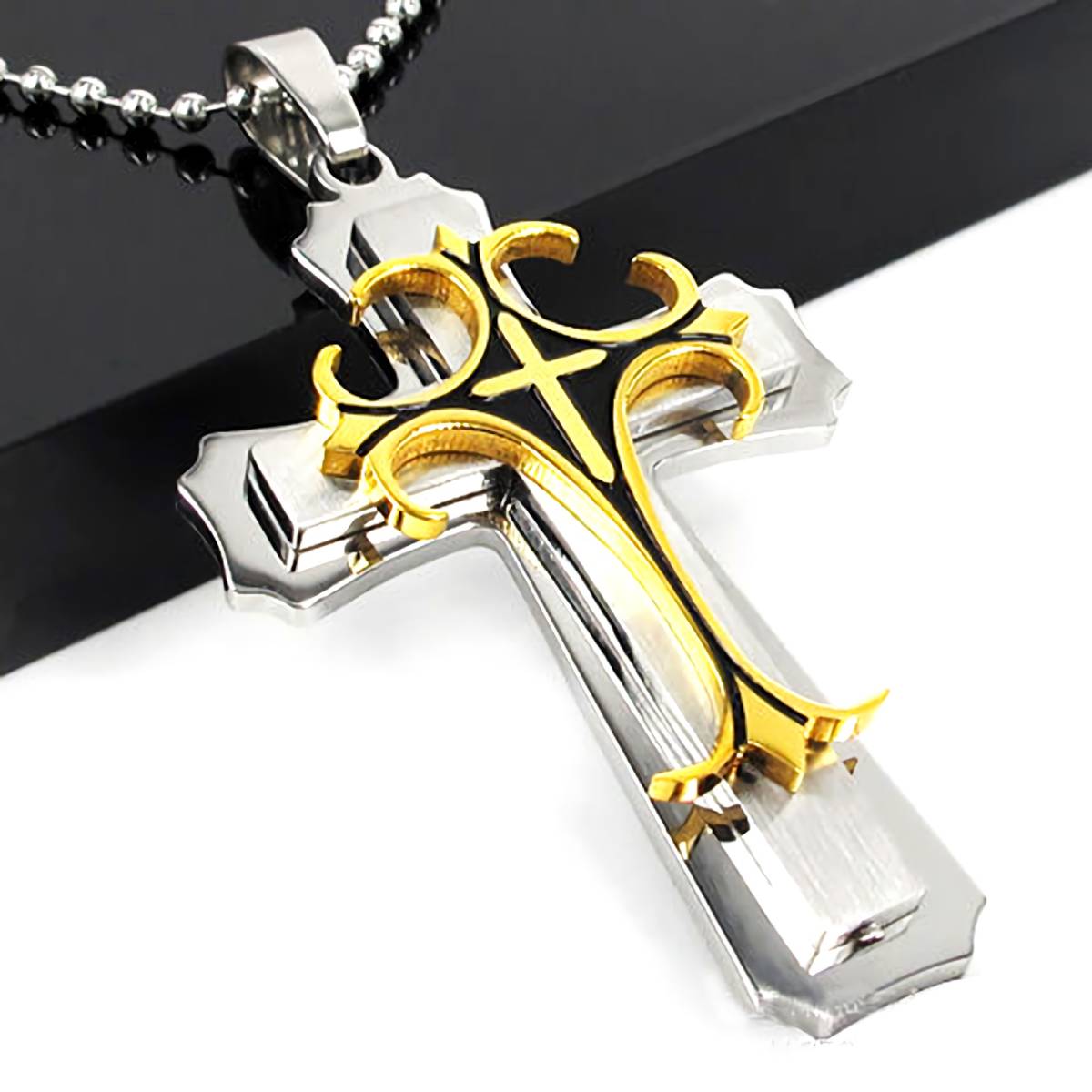新品1円~★送料無料★3層パンク十字架ゴールド金彩ブラック磔メンズ 925シルバーネックレス誕生日プレゼント旅行連休聖夜冬ギフト国内発送