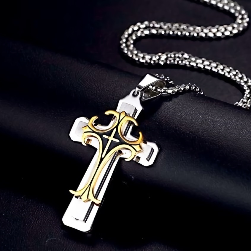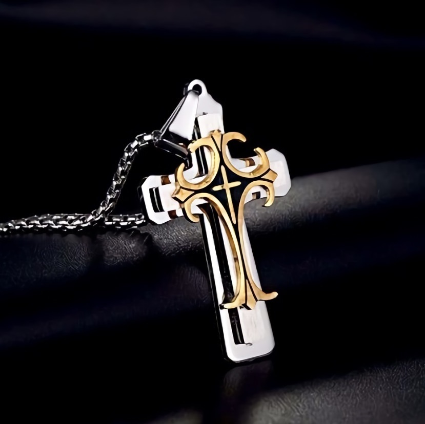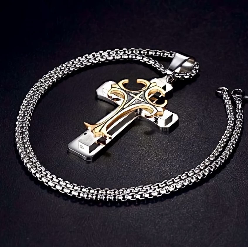 こちら黄金色とブラックのツートンカラーが素晴らしい十字架クロスシルバーネックレスとなります。