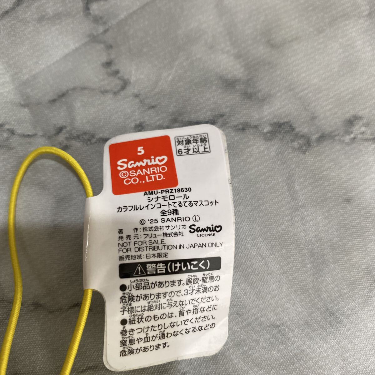 シナモロールカラフルレインコートてるてるマスコットの黄色になります。