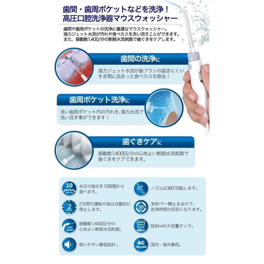マウスウォッシャー 口腔ケア 4本ノズル付き 虫歯 歯周病対策 歯ぐき 矯正 歯垢洗浄 口臭防止 自宅 高圧 送料無料- 60N◇ 高圧口腔洗浄器