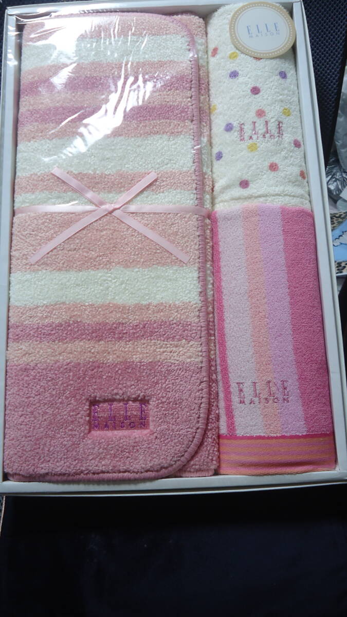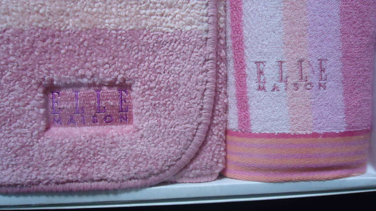 ★即決★ ELLE エル 3点セット バスマット コンパクトバスタオル フェイスタオル ピンク系 未使用