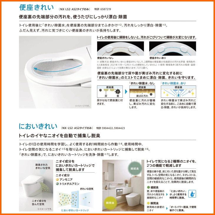 | 商品説明 | 〜TOTO 3つのびっくリーン技術〜 ●使うたび除菌 便器もノズルも便座も、清潔つづく ●汚れツルリン 約1200℃で焼き上げた、ナノレベルになめらかな陶器表面だから、汚れがツルっと落ちてずっときれい ●おそうじ超ラク 凸凹をそぎ落としたカタチで、便器フチ裏もないからサッとひとふき、お手入れカンタン ※商品の詳細につきましてはメーカーHP・カタログでご確認願います ◆本タイプ以外の型・サイズもございます。 ◆トイレの他、システムキッチン・ユニットバス・洗面化粧台等の水廻り商品も取り扱って おります。 ◆オプション等で別途お見積りが必要なケースのお問い合わせは、TEL・FAX・メールにて お気軽にどうぞ! ◆メーカーの定価見積書からもお買い求め頂けます。事前にご連絡の上、FAXまたはメール にてお送り下さい。弊社価格の見積書を作成致します。 ◆サイズ違い等、ショップ上に掲載されていない商品をご希望の方はお問い合わせ下さい。 ⇒クリックで”WEBカタログ”にリンクします |