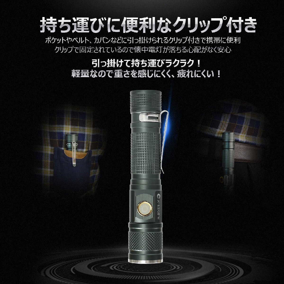 | 点灯モード | 3モード(ハイ、ロー、フラッシュ) ZOOM機能付き |
