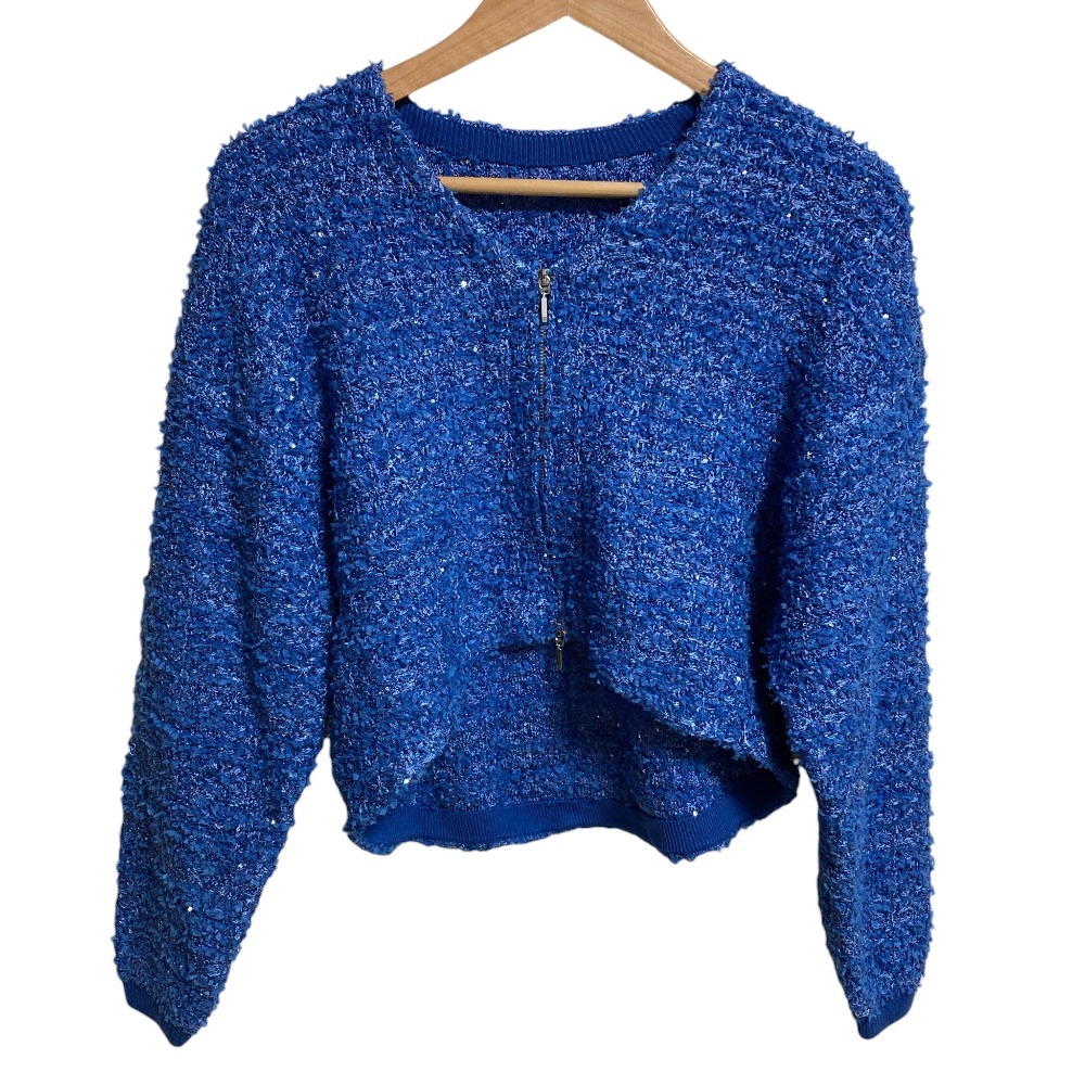 商品名:25SS Diagram ダイアグラム グレースコンチネンタル ツイードニットzipカーディガン 0325153313 サイズ36 ブルー