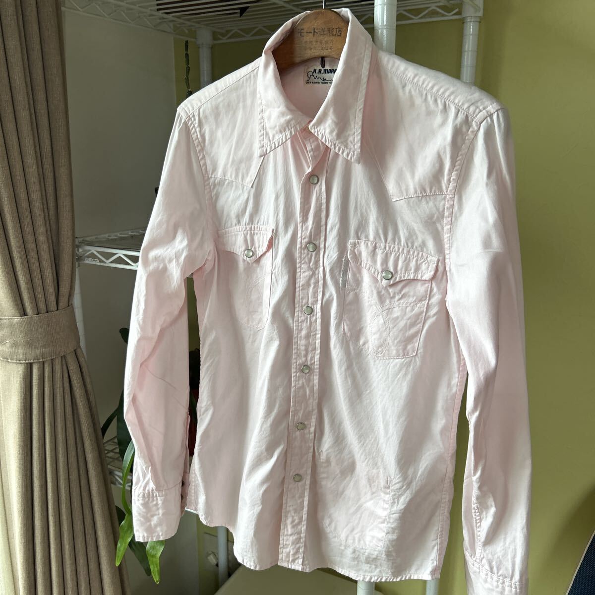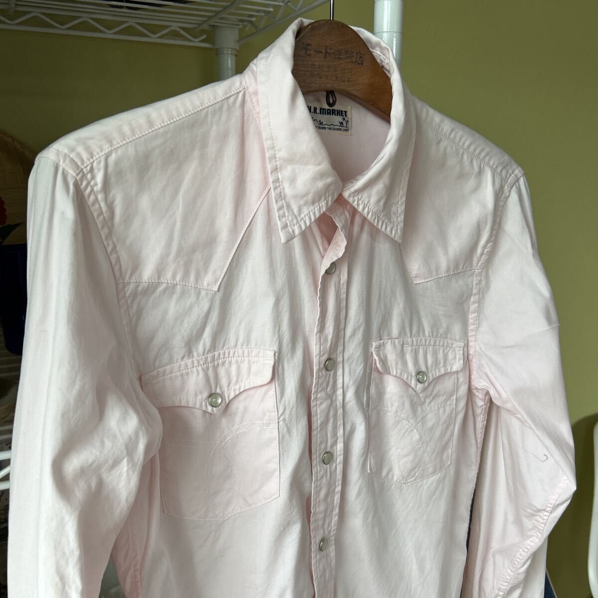 袖丈52(脇下縫目〜袖先端)多少の誤差はお許しください。ほんのわずかに点状の薄しみ見られますが気にならない程度 良い雰囲気です。日本製 綿100 薄手のオックスフォード風生地 ピンク ウエスタンシャツ できる限りダメージは説明させていただきますが、こちらが気づかない程度のわずかなしみ、よごれ、